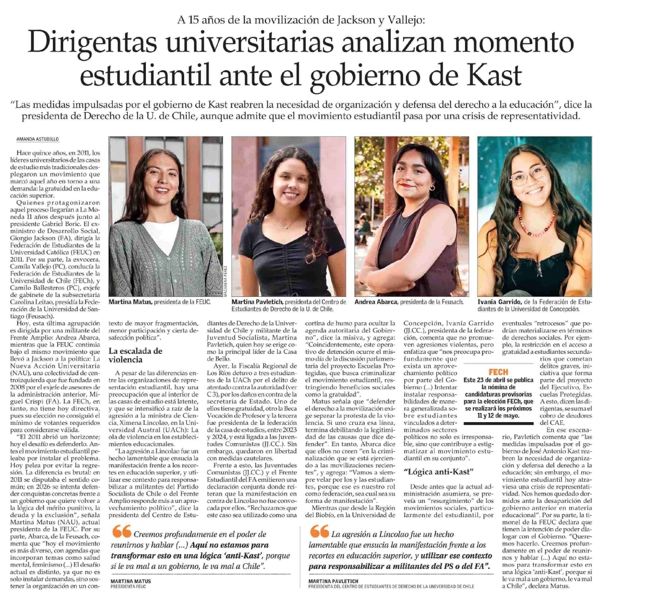 Título: Dirigentas universitarias analizan momento estudiantil ante el gobierno de Kast