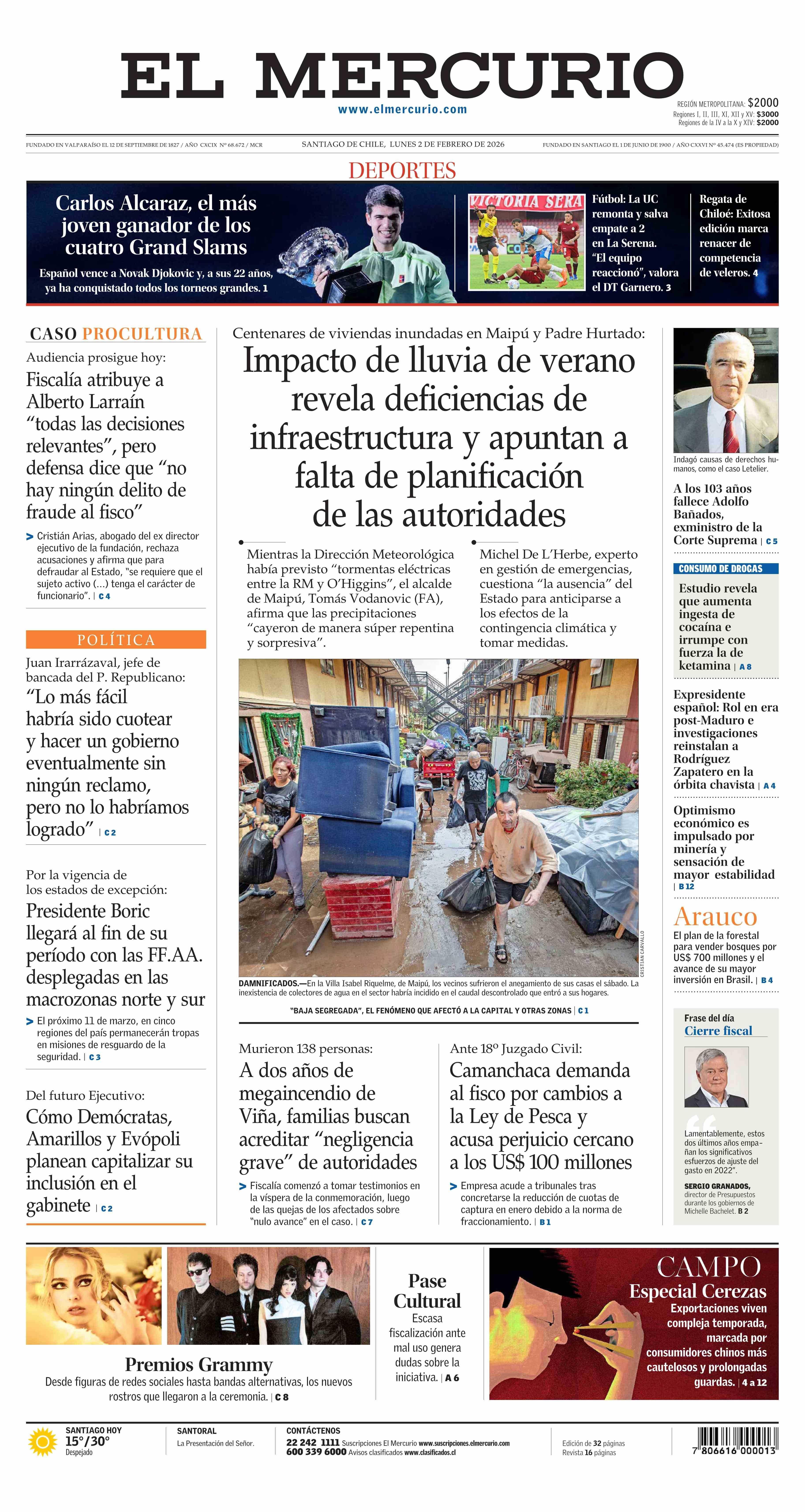 Fecha: 02-02-2026 Sector: Portada Región: Región Metropolitana de Santiago
