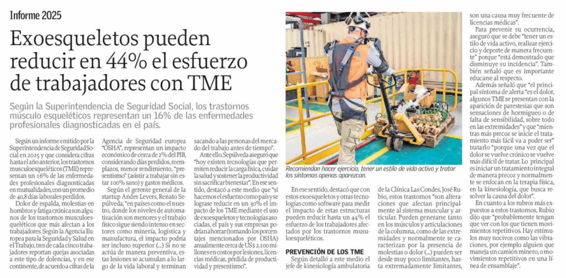 Título: Exoesqueletos pueden reducir en 44% el esfuerzo de trabajadores con TME