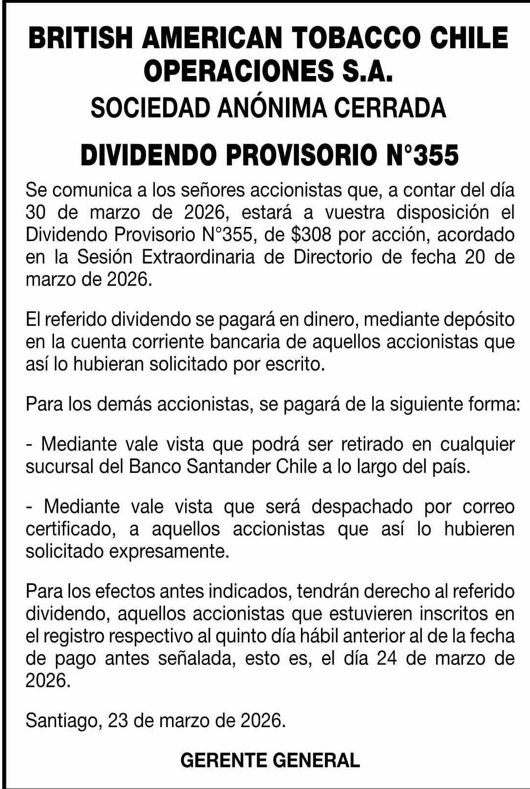 BRITISH AMERICAN TOBACCO CHILE 24-03-2026 El Mercurio |