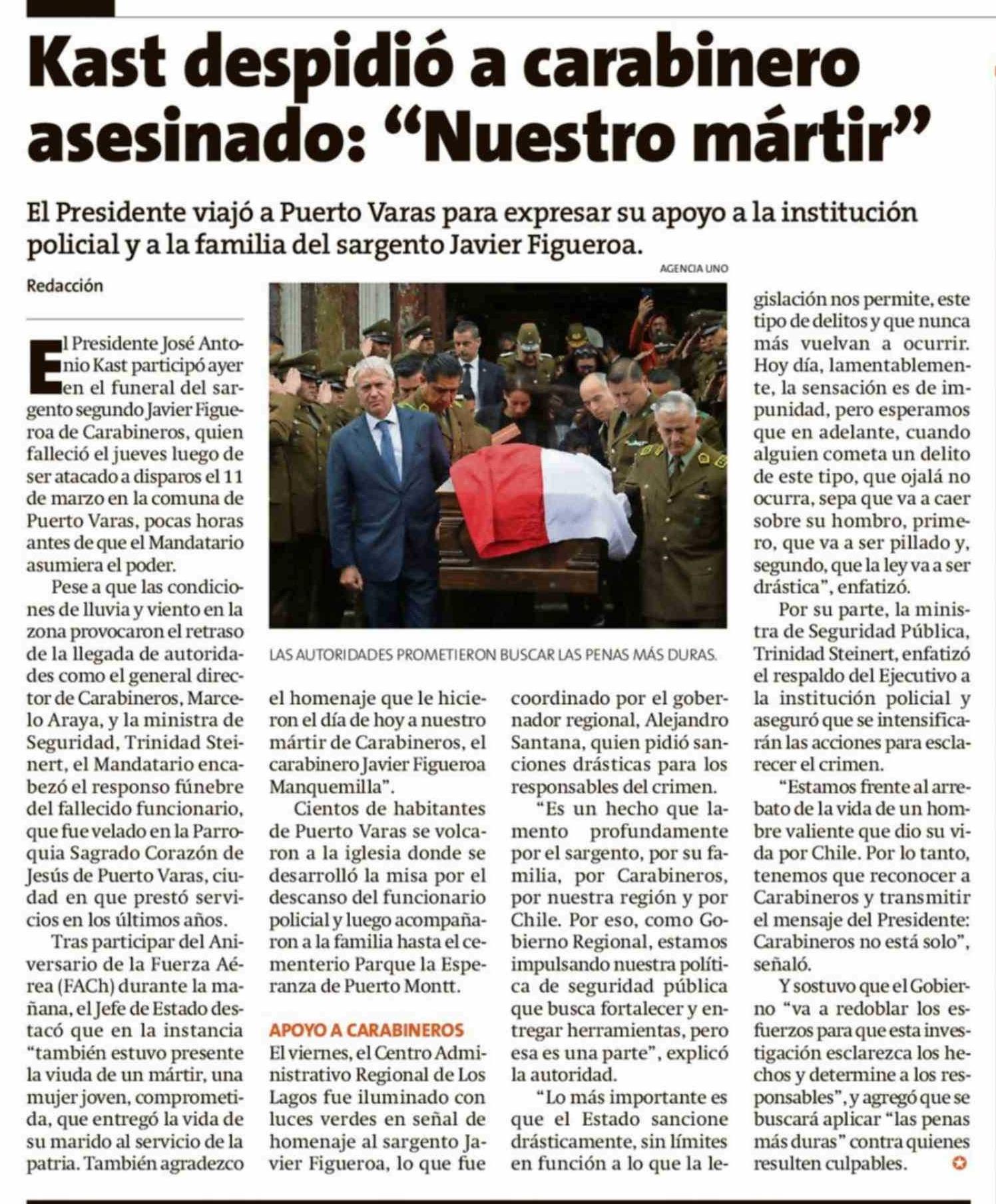 Título: Kast despidió a carabinero asesinado: "Nuestro mártir"