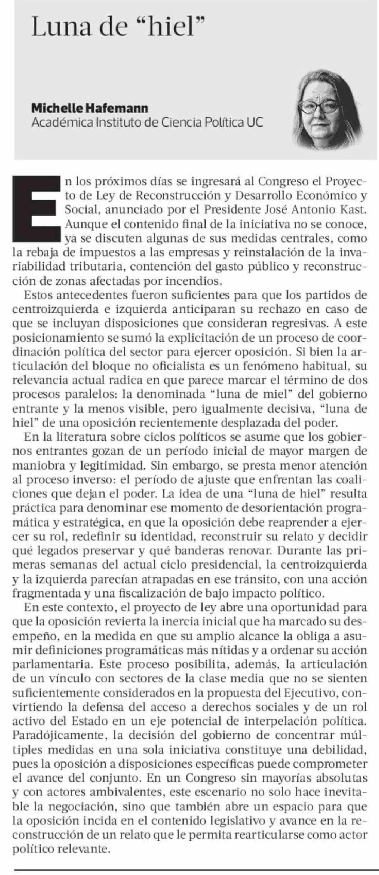Columnas de Opinión: Luna de "hiel" 20-04-2026 La Tercera |