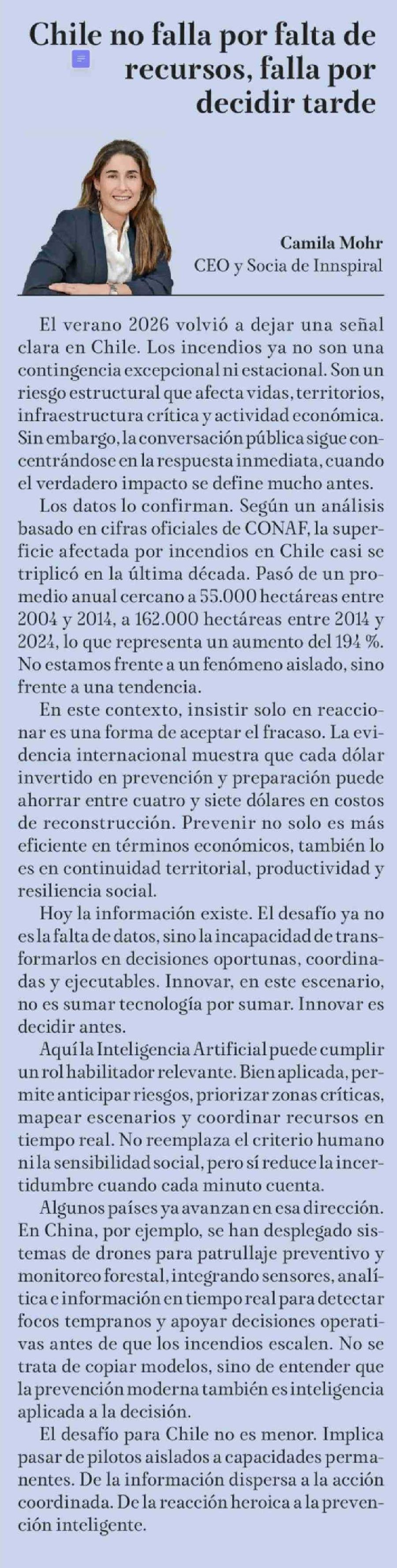 | Título: | Columnas de Opinión: Chile no falla por falta de recursos, falla por decidir tarde |