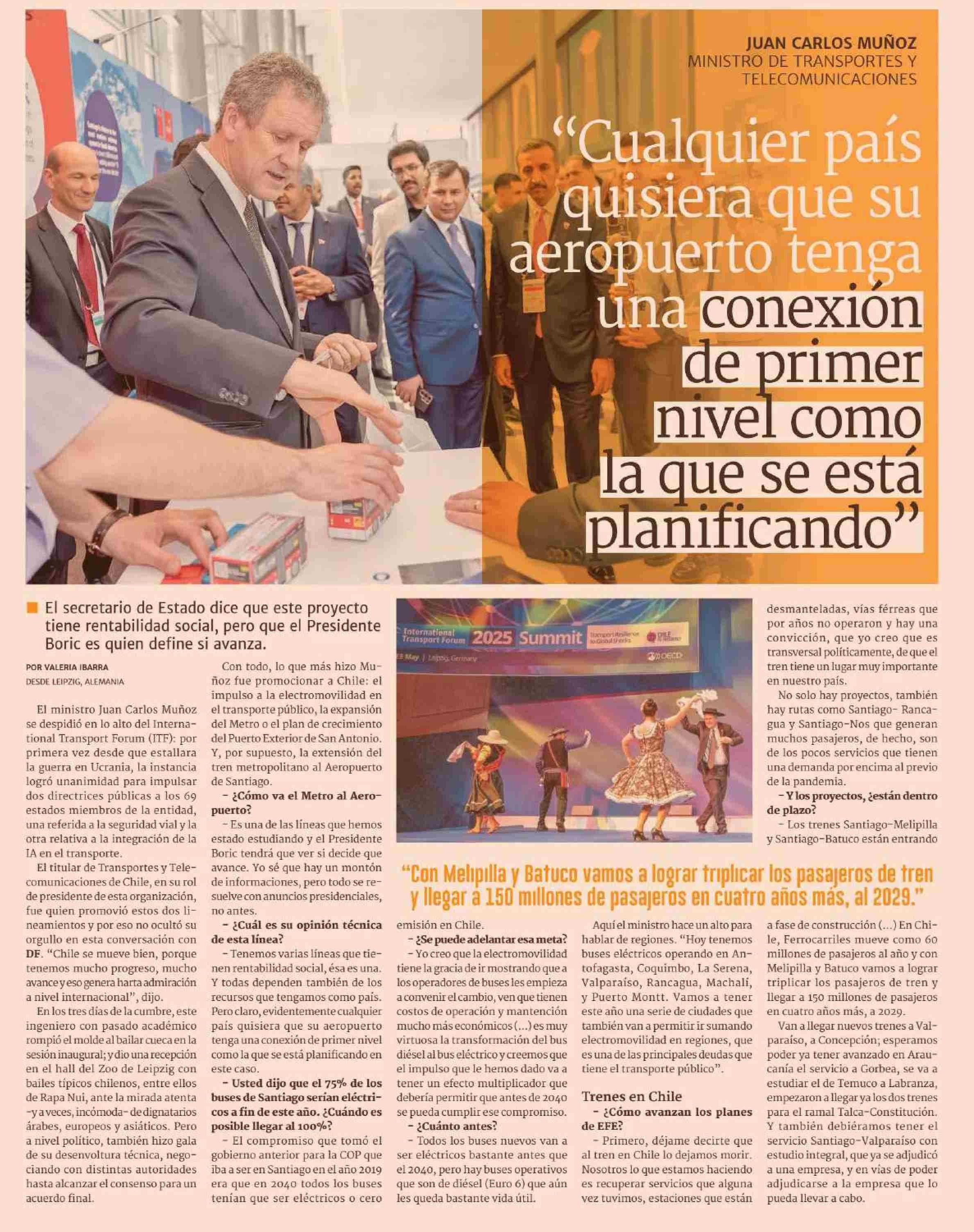 " Cualquier país quiaiera que su aeropuerto tenga una de primer nivel como la que se esta planificando” 26-05-2025 Diario Financiero |