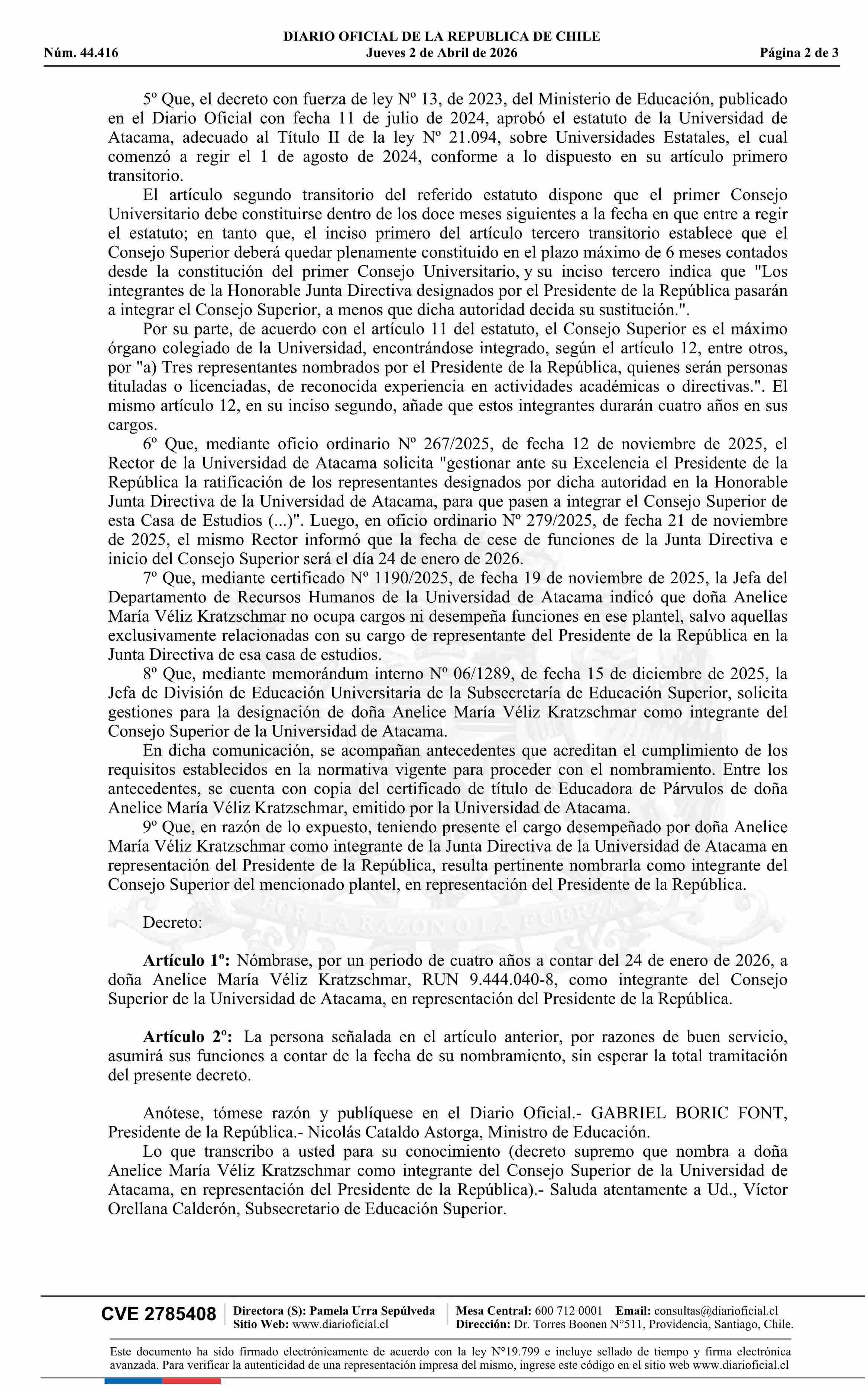 MINISTERIO DE EDUCACIÓN 02-04-2026 Diario Oficial Edición Electrónica |