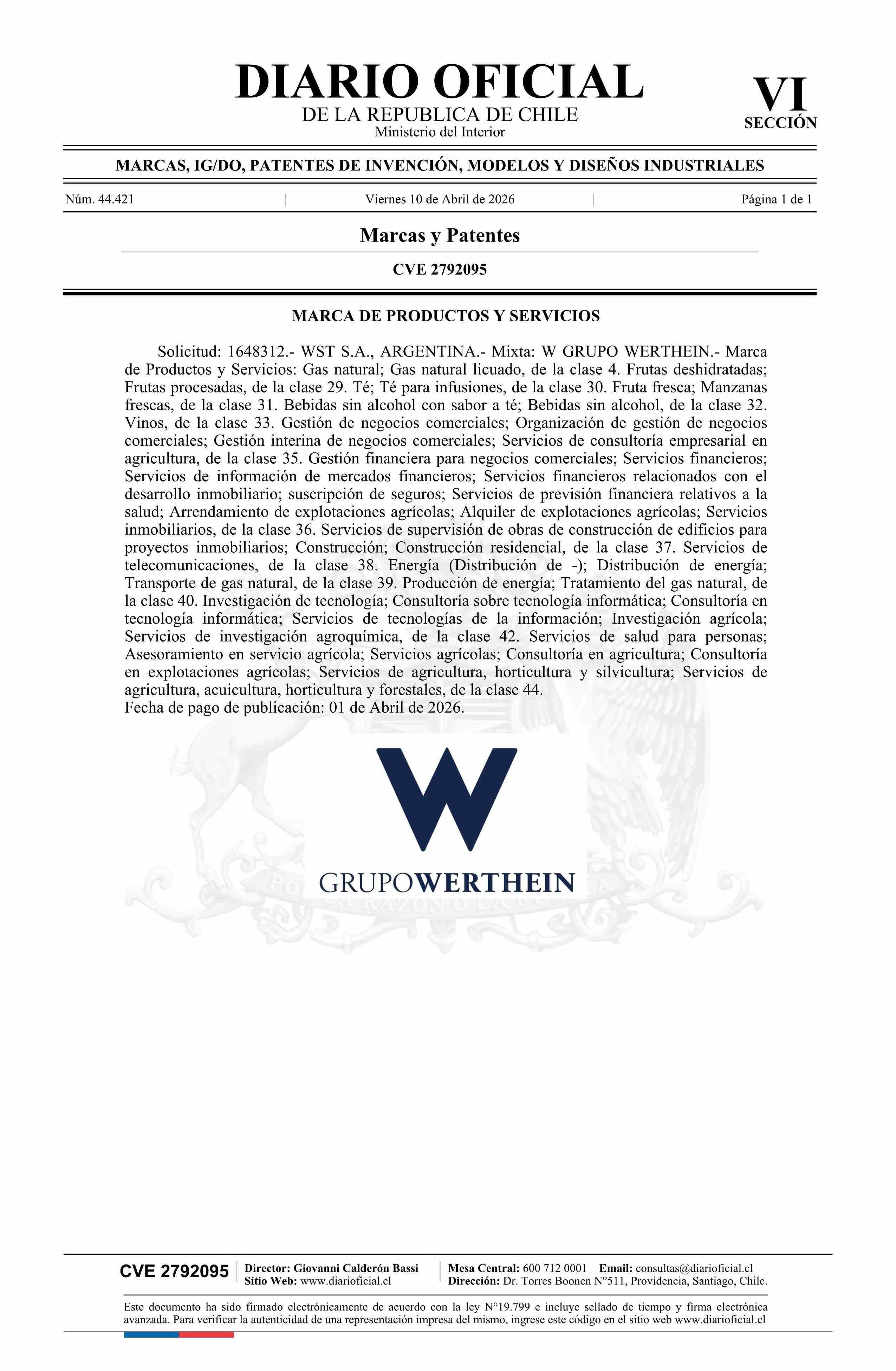 Solicitud número 1648312.- W GRUPO WERTHEIN 10-04-2026 Diario Oficial Edición Electrónica |