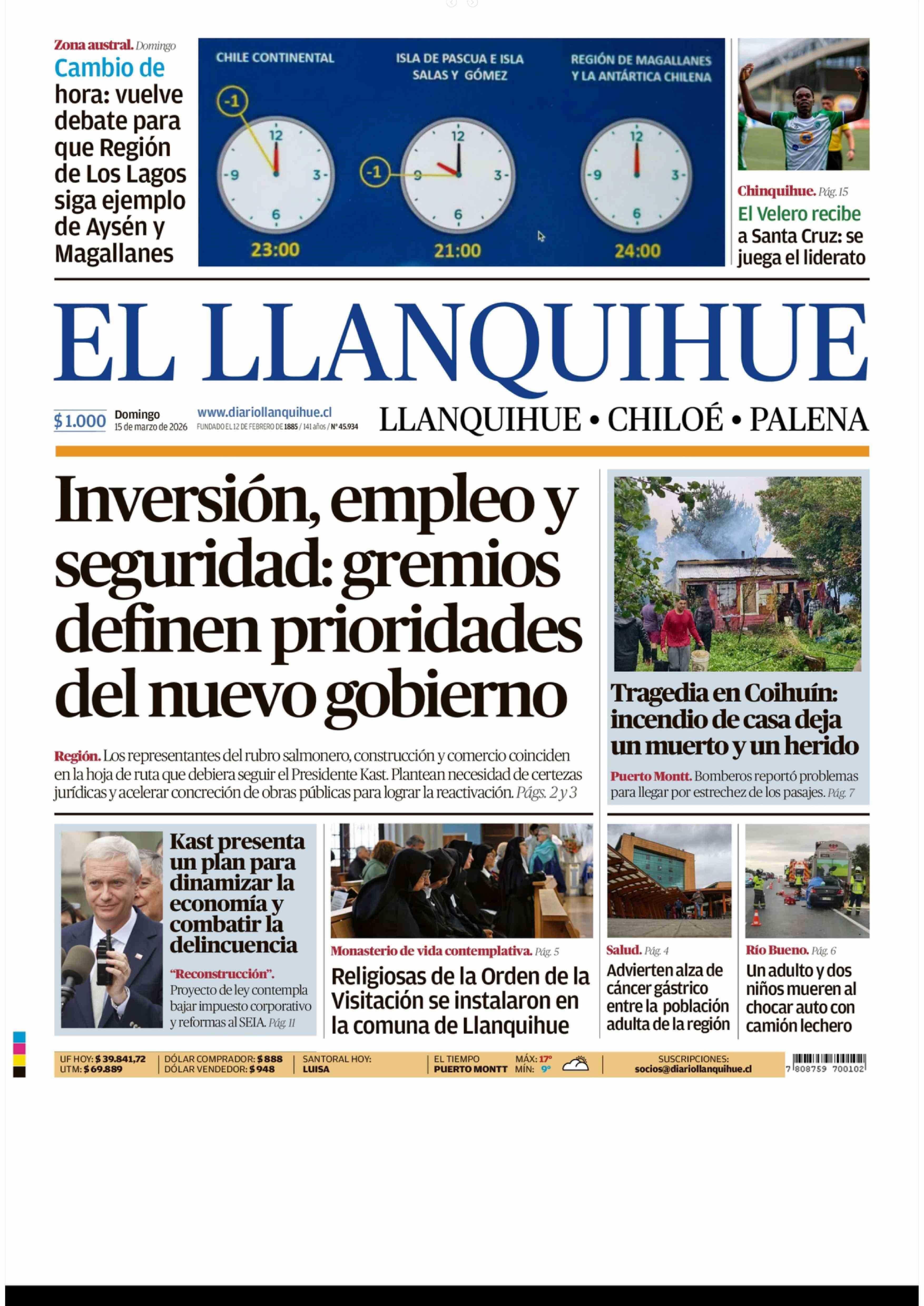 | Fecha: | 15-03-2026 | Sector: | Portada | Región: | Región de Los Lagos |