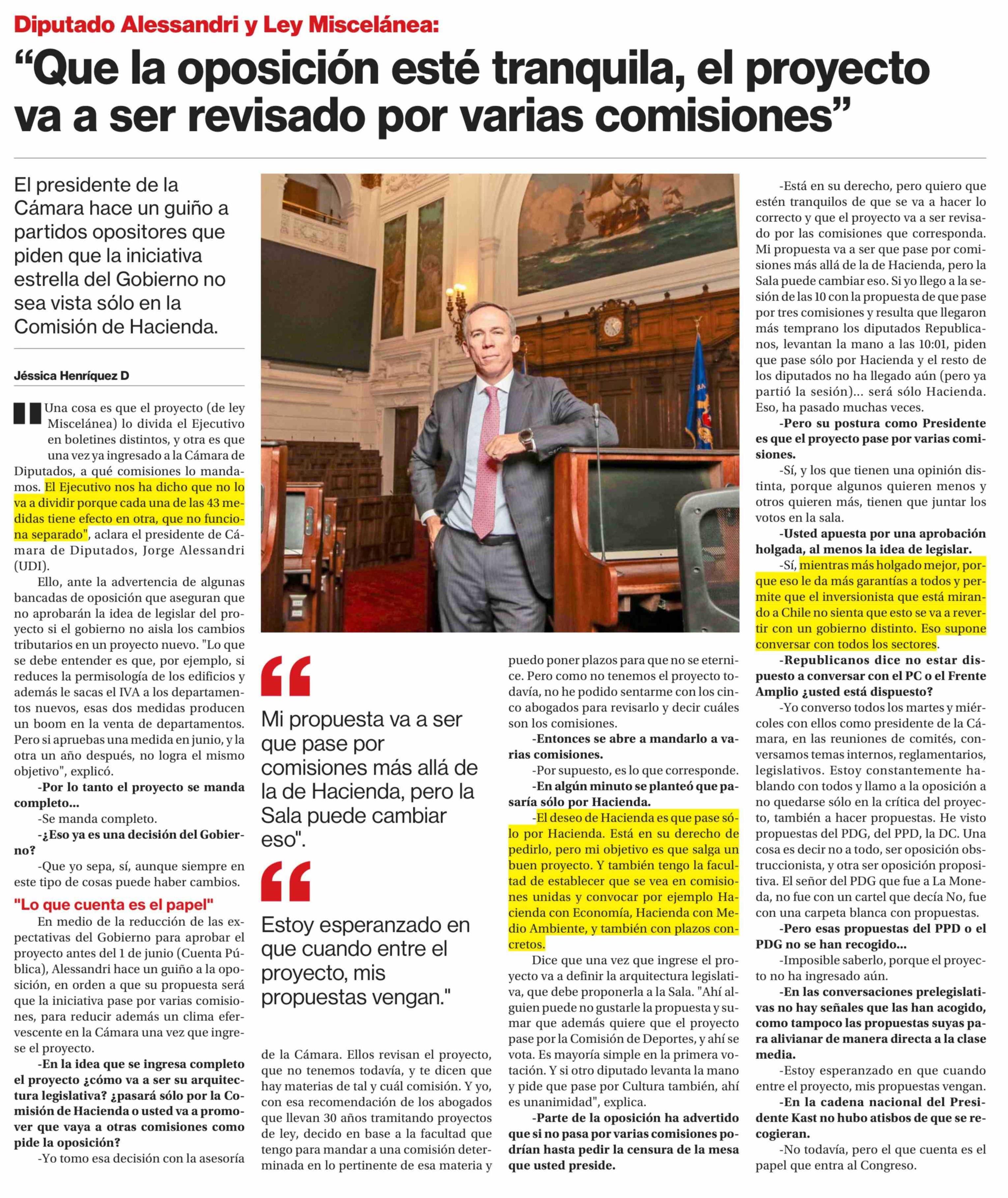 "Que la oposición esté tranquila, el proyecto va a ser revisado por varias comisiones" 20-04-2026 La Segunda |