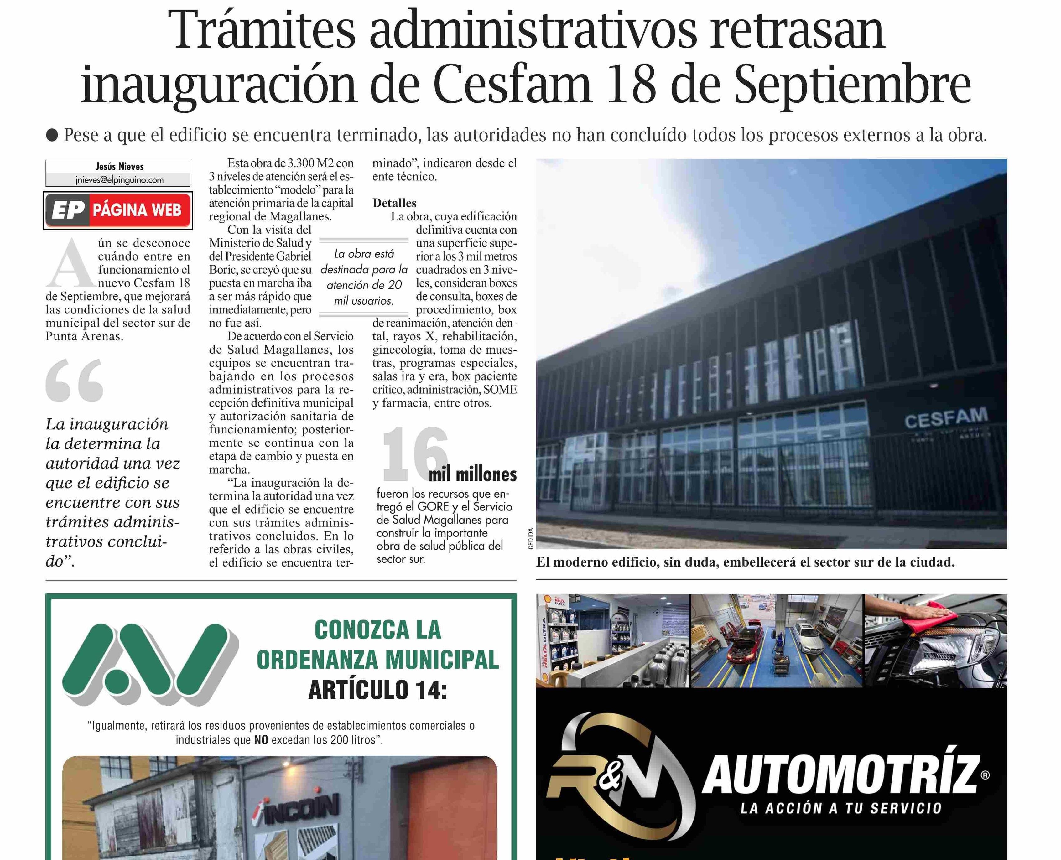 Título: Trámites administrativos retrasan inauguración de Cesfam 18 de Septiembre