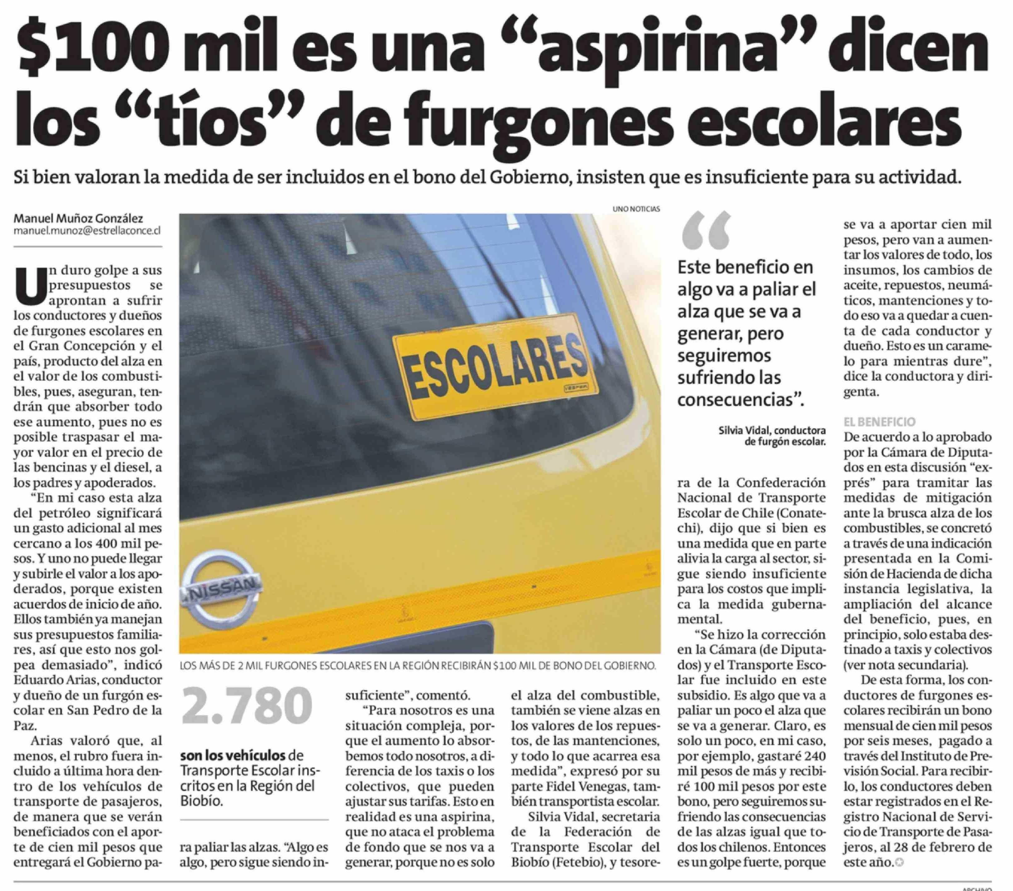 $100 Mil es una "aspirina" dicen los "tíos" de furgones escolares 26-03-2026 La Estrella de Concepción |