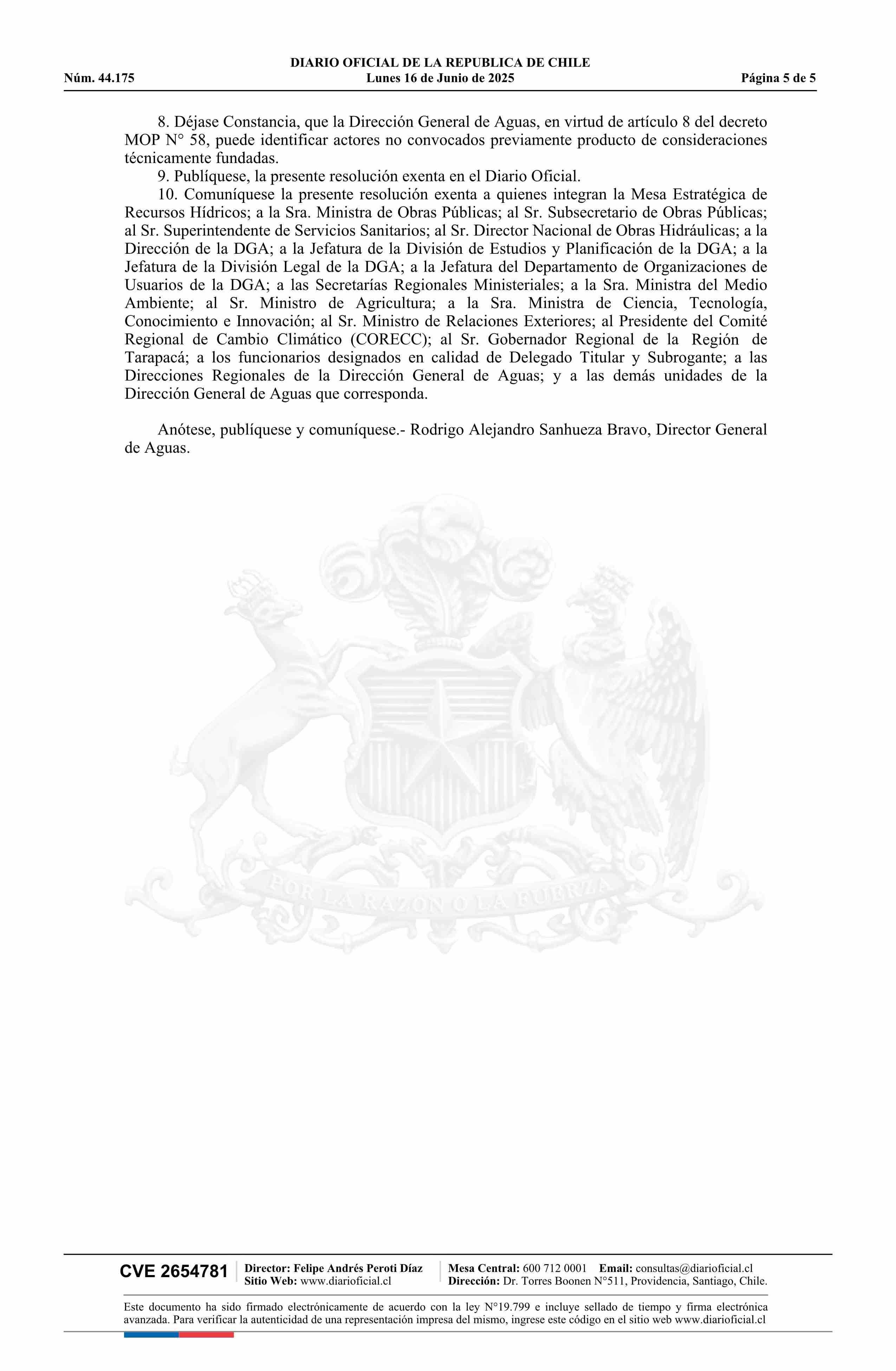 Título: Resolución exenta número 1.849, de 2025.- Delimita y denomina cuenca de planificación para el desarrollo del Plan Estratégico de Recursos Hídricos en la Cuenca de Camiña; constituye mesa estratégica de recursos hídricos e identifica convocados y asistencia a primera sesión; y designa Delegado(a) de