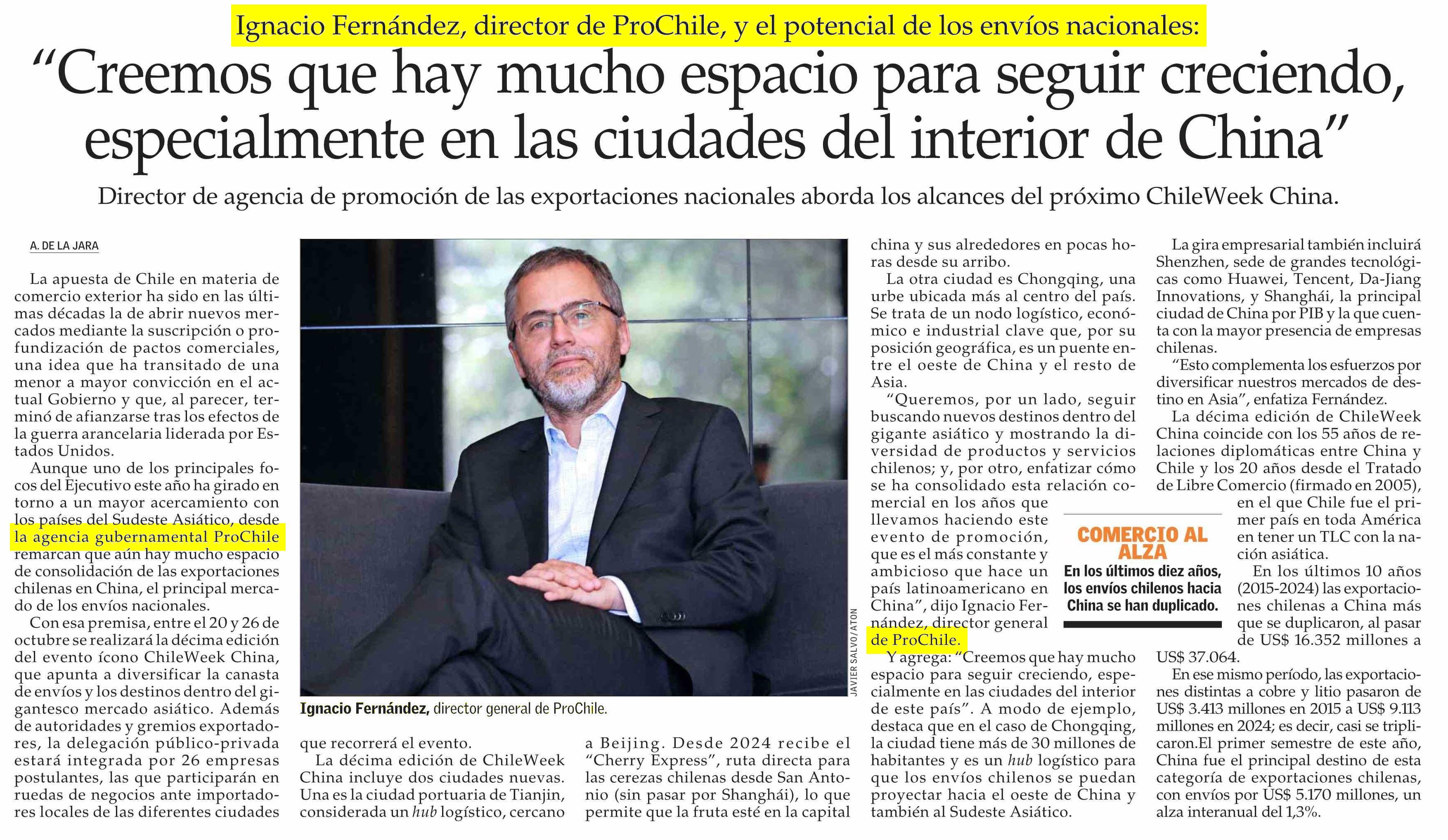 “Creemos que hay mucho espacio para seguir creciendo, especialmente en las ciudades del interior de China” 06-10-2025 El Mercurio |