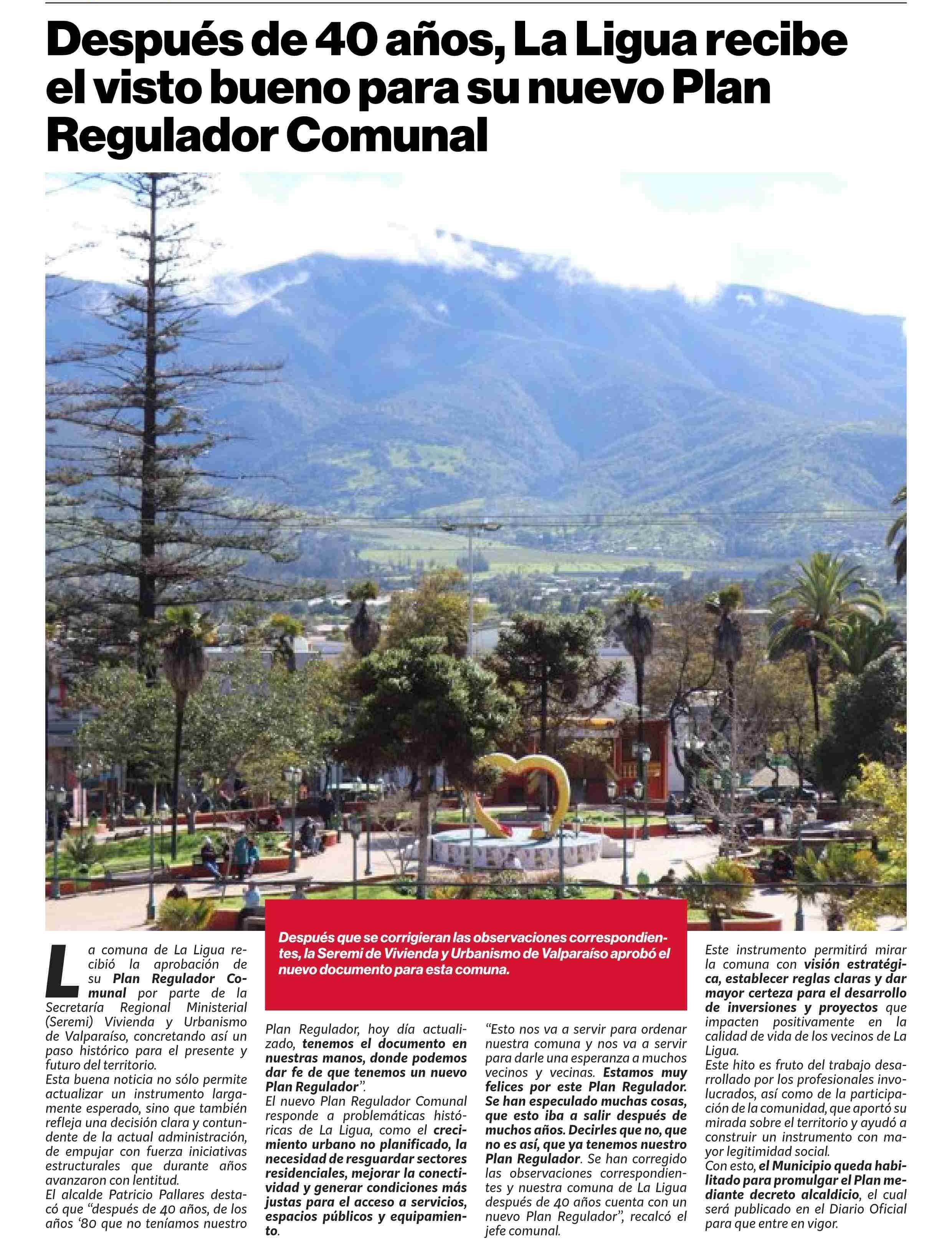 | Título: | Después de 40 años, La Ligua recibe el visto bueno para su nuevo Plan Regulador Comunal |