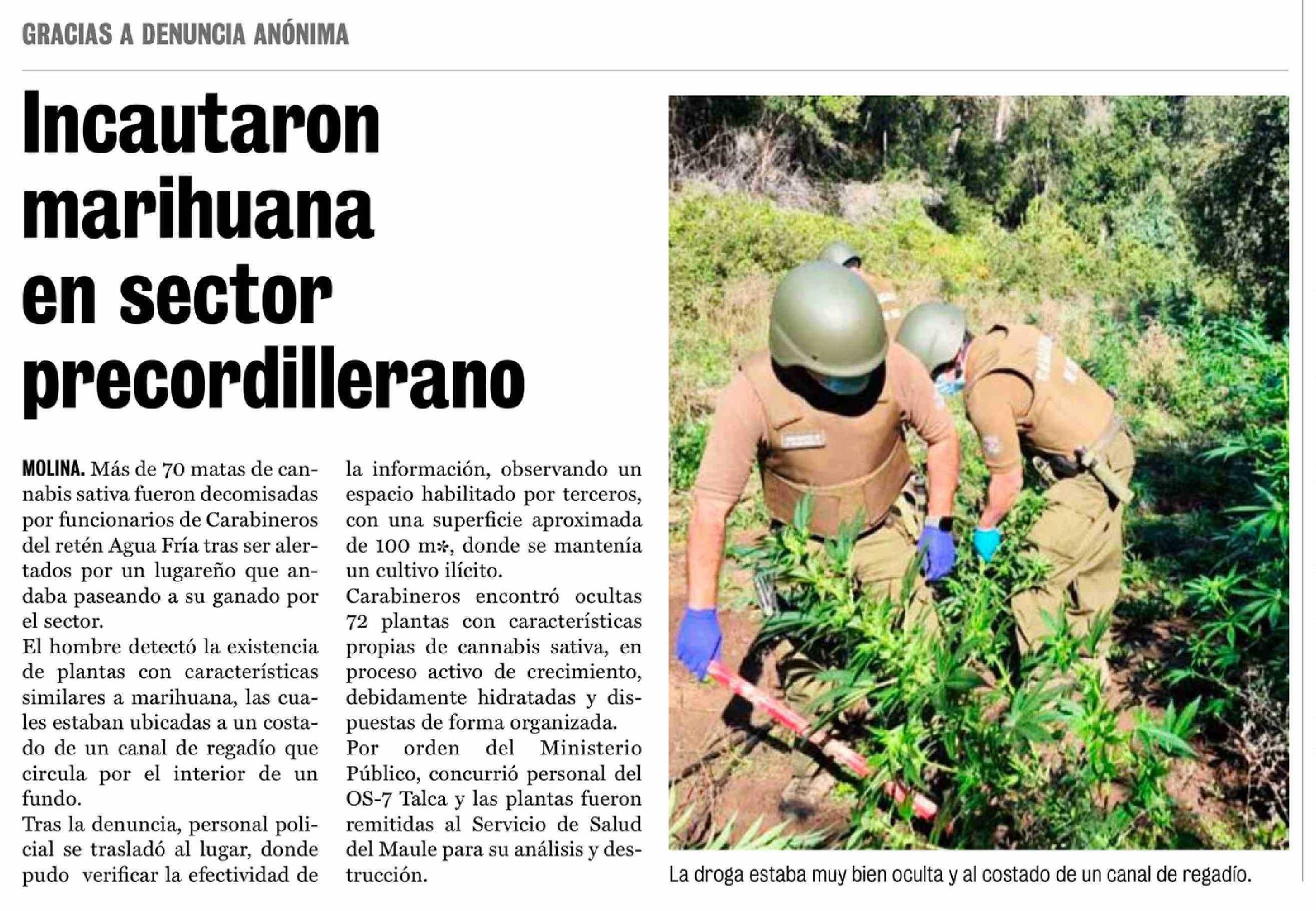 Incautaron marihuana en sector precordillerano 02-04-2026 La Prensa de Curicó |