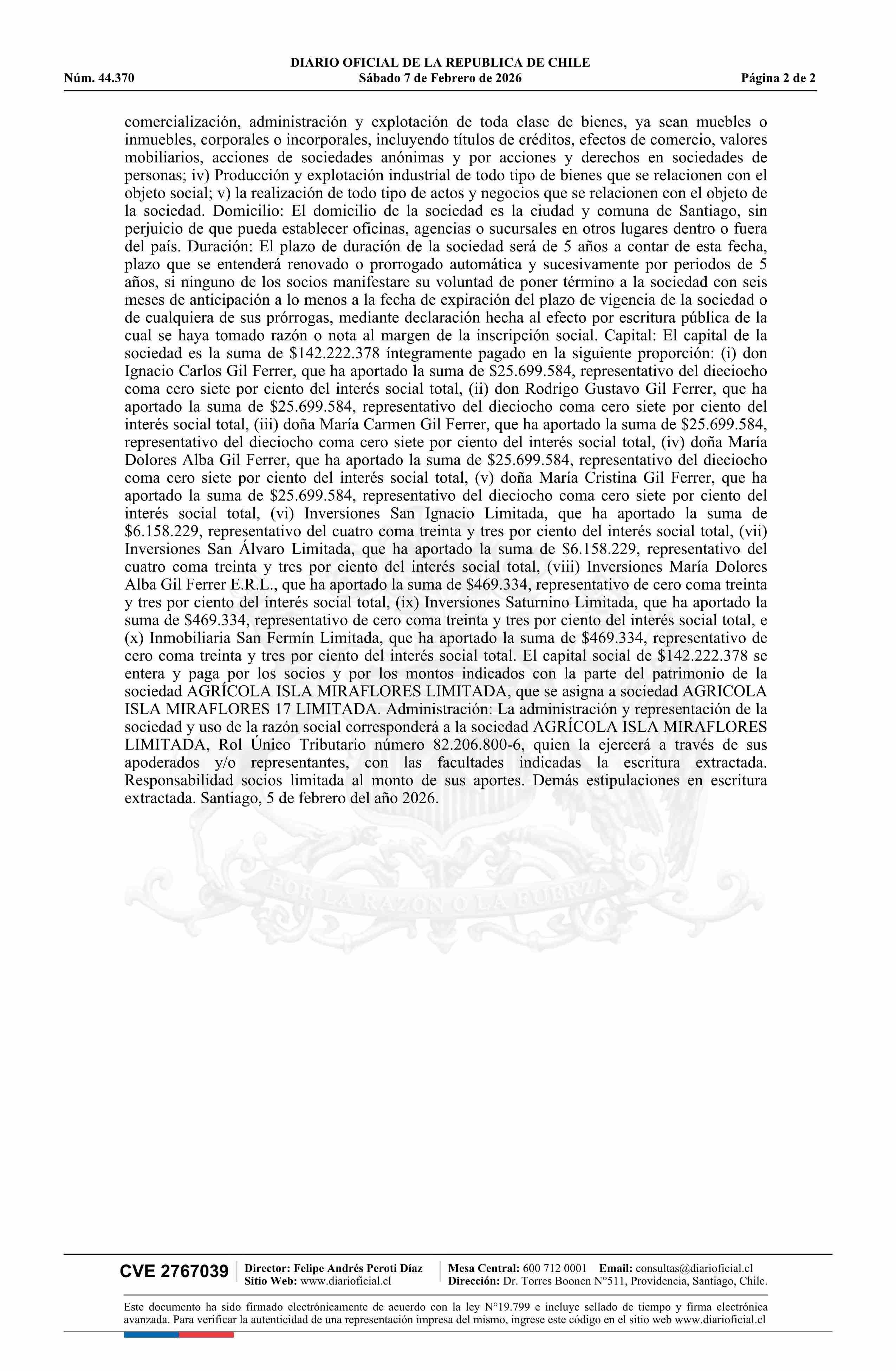 Título: AGRICOLA ISLA MIRAFLORES 17 LIMITADA