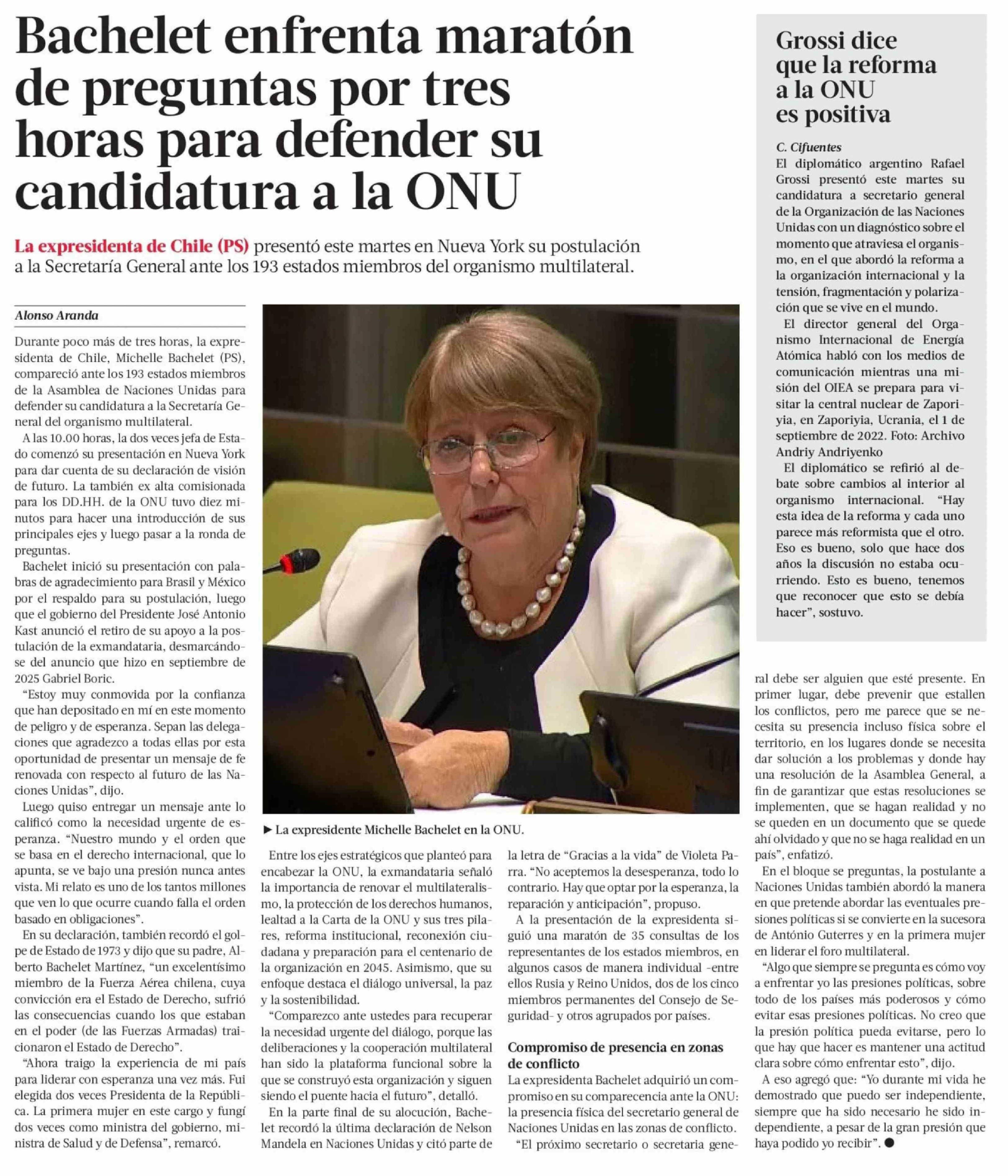 Título: Bachelet enfrenta maratón de preguntas por tres horas para defender su candidatura a la ONU