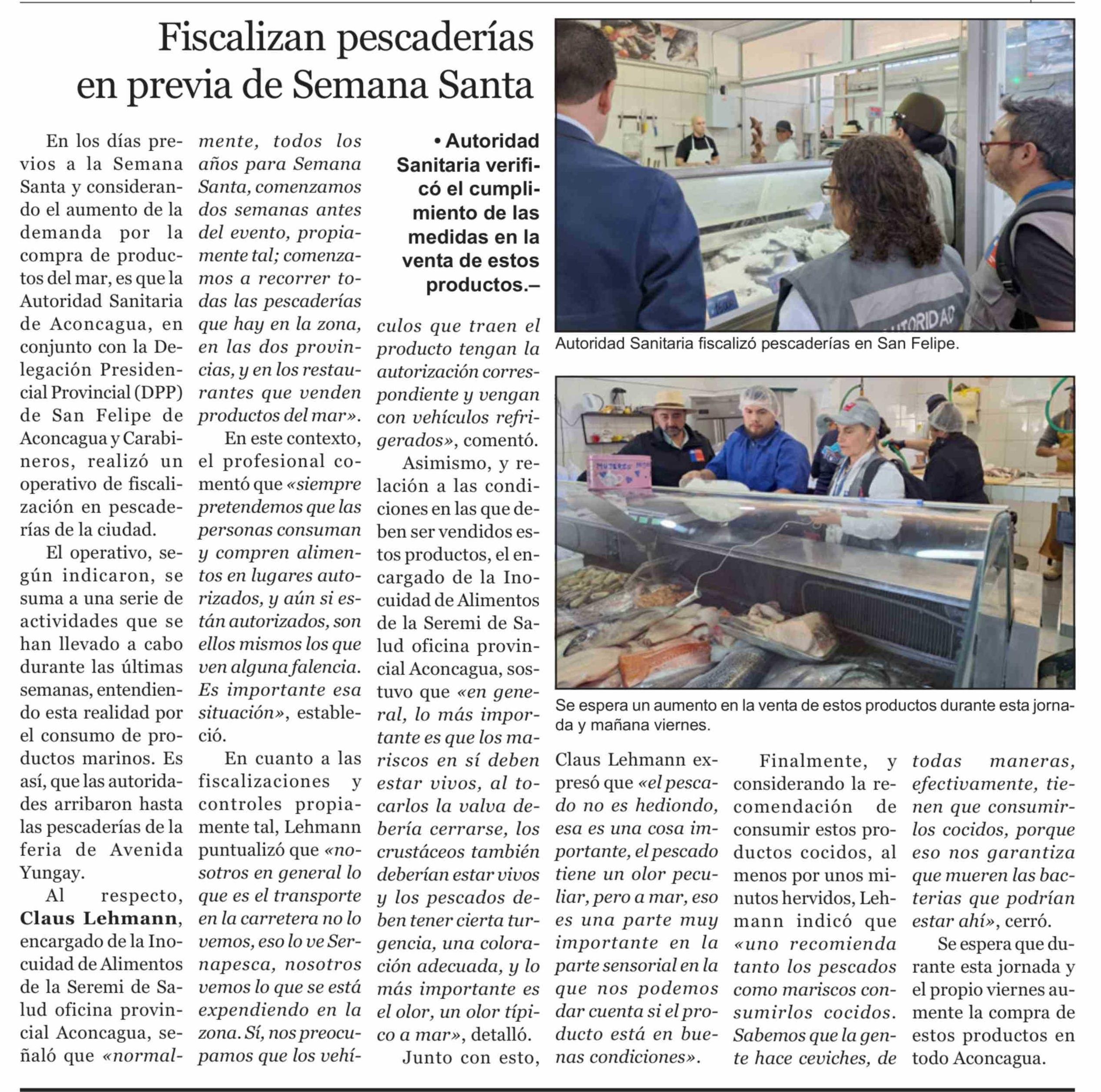 | Título: | Fiscalizan pescaderías en previa de Semana Santa |