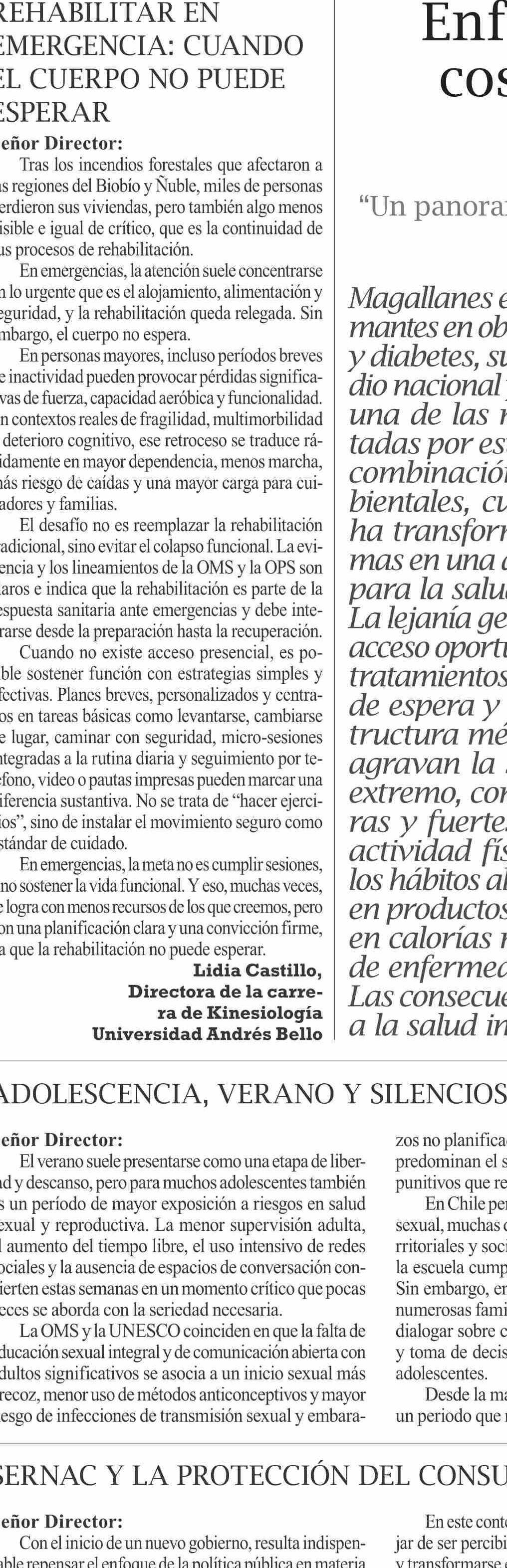 Cartas: REHABILITAR EN EMERGENCIA: CUANDO EL CUERPO NO PUEDE ESPERAR 29-01-2026 El Pingüino |