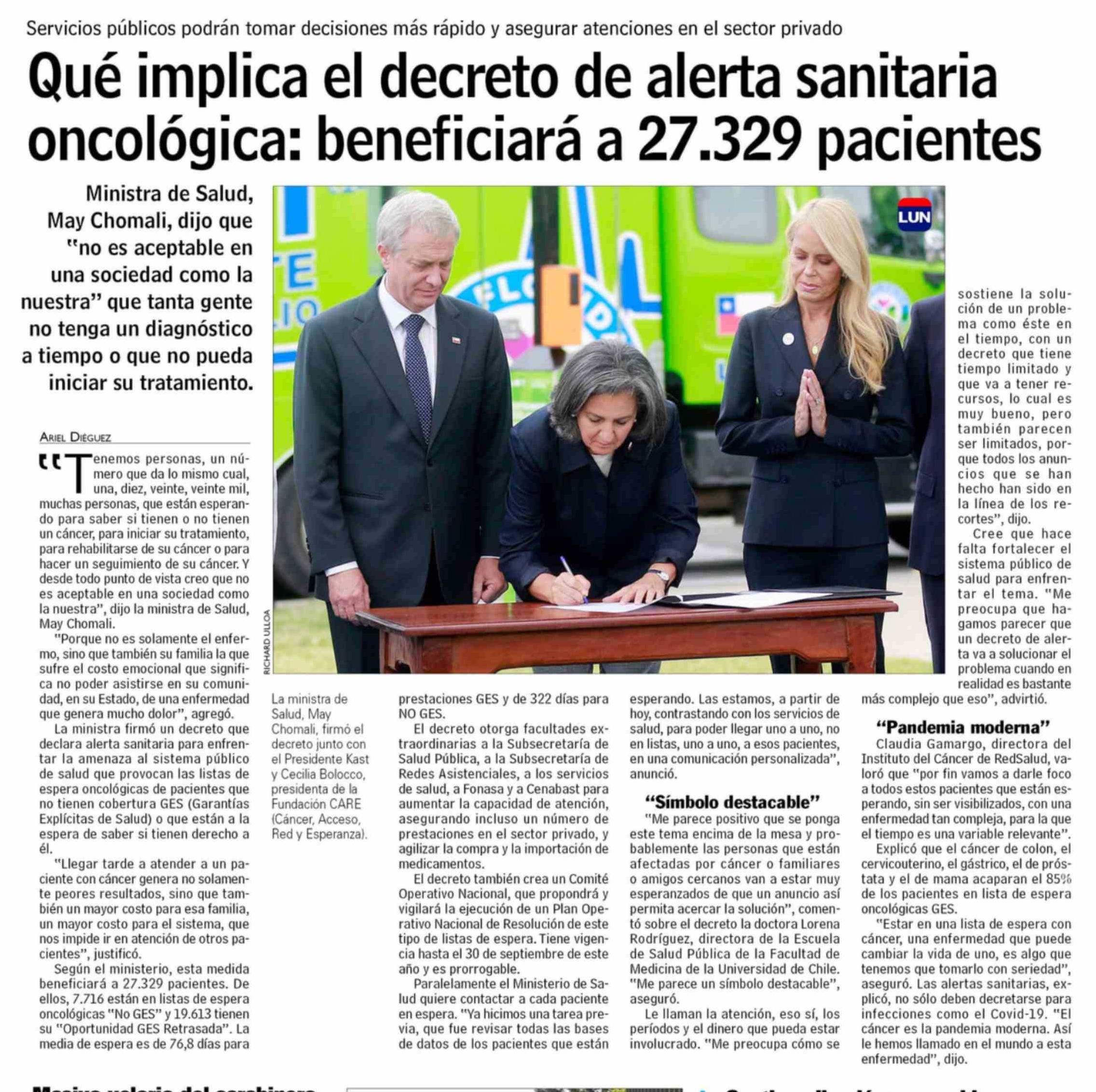 Qué implica el decreto de alerta sanitaria oncológica: beneficiará a 27.329 pacientes 21-03-2026 Las Últimas Noticias |