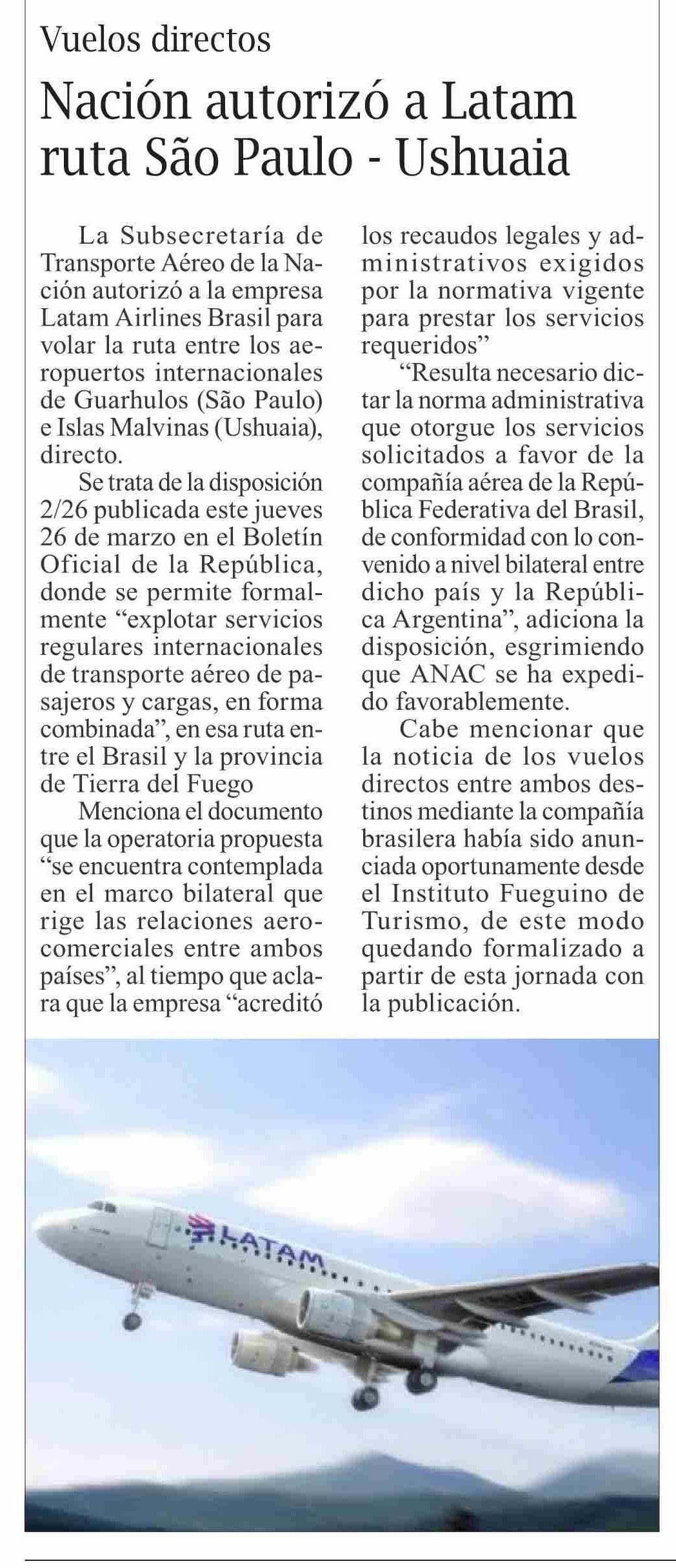 Título: Nación autorizó a Latam ruta São Paulo - Ushuaia