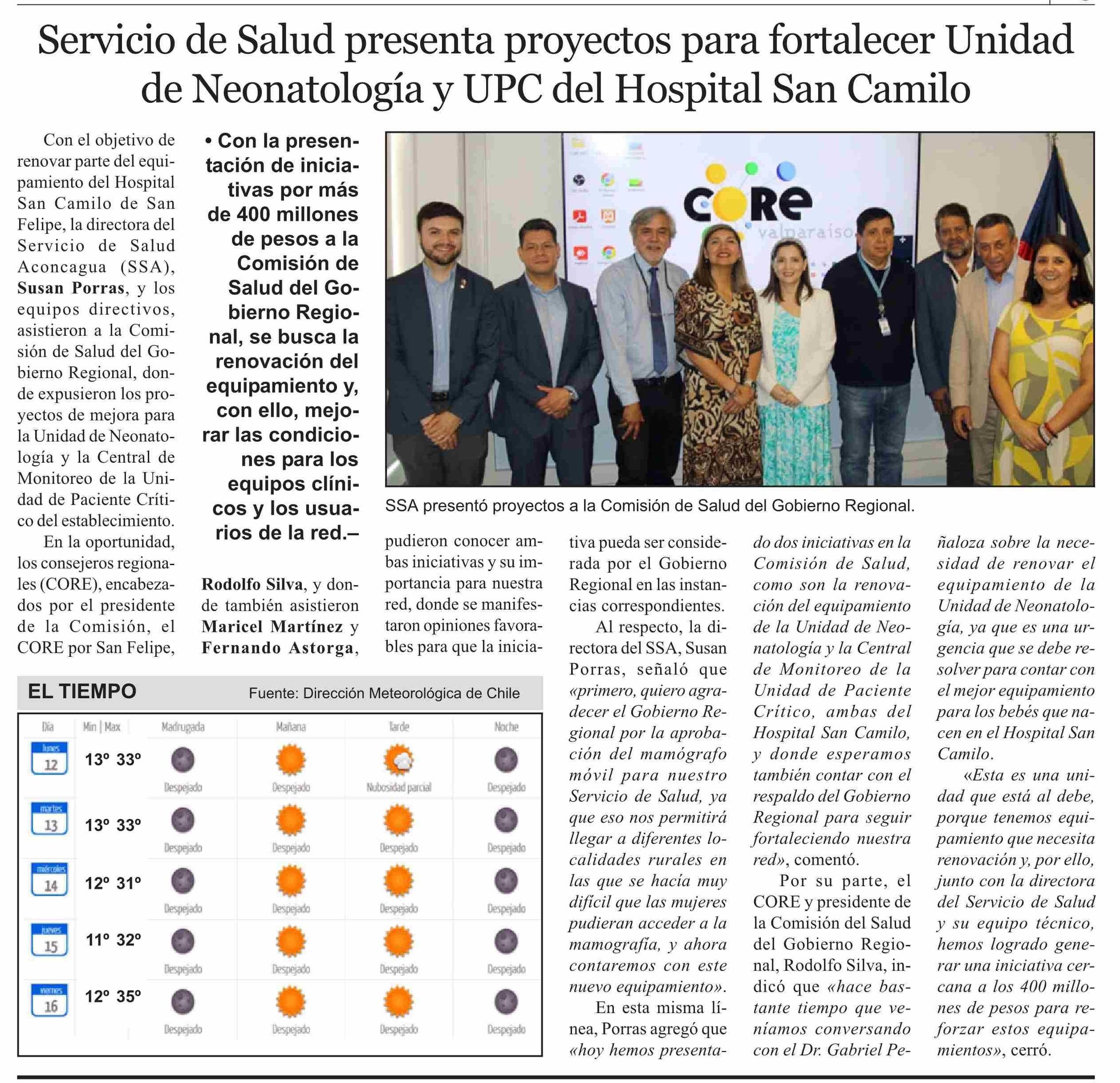 Título: Servicio de Salud presenta proyectos para fortalecer Unidad de Neonatología y UPC del Hospital San Camilo