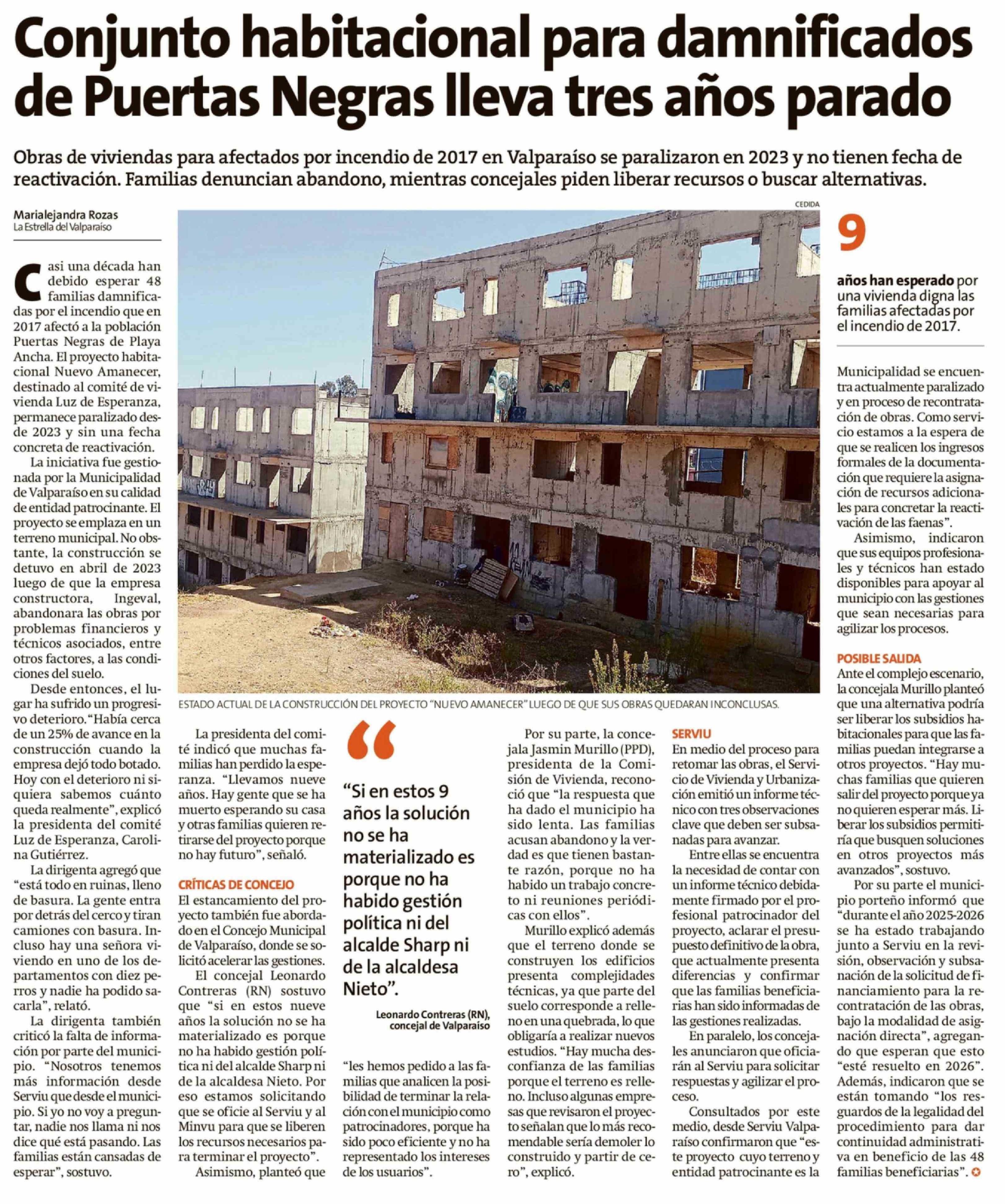 Conjunto habitacional para damnificados de Puertas Negras lleva tres años parado 16-03-2026 La Estrella de Valparaíso |