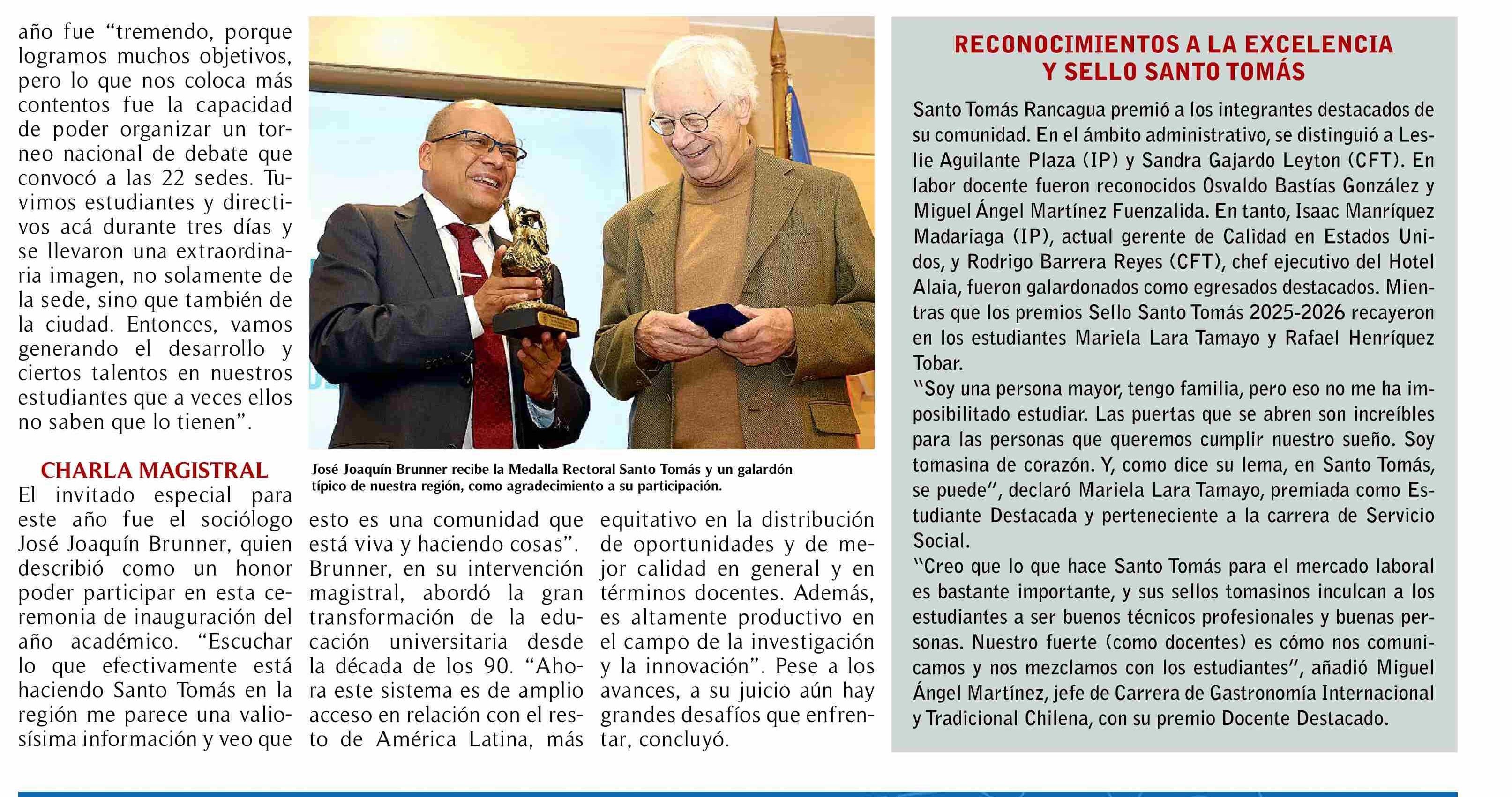 | Título: | Santo Tomás Rancagua inaugura año académico con cuenta pública, charla masistral v premiación institucional |