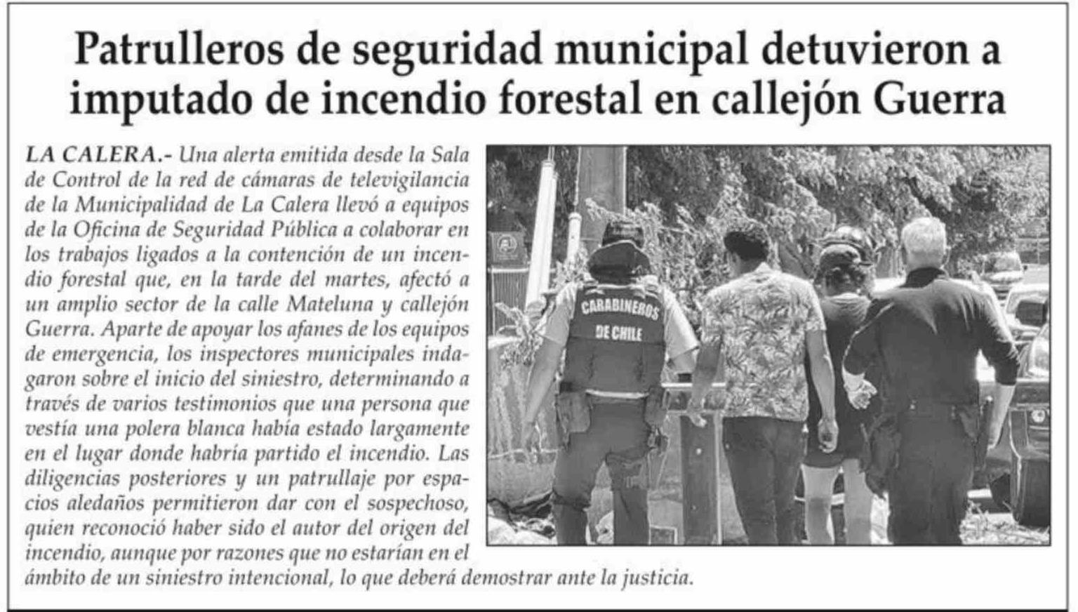 Título: Patrulleros de seguridad municipal detuvieron a imputado de incendio forestal en callejón Guerra