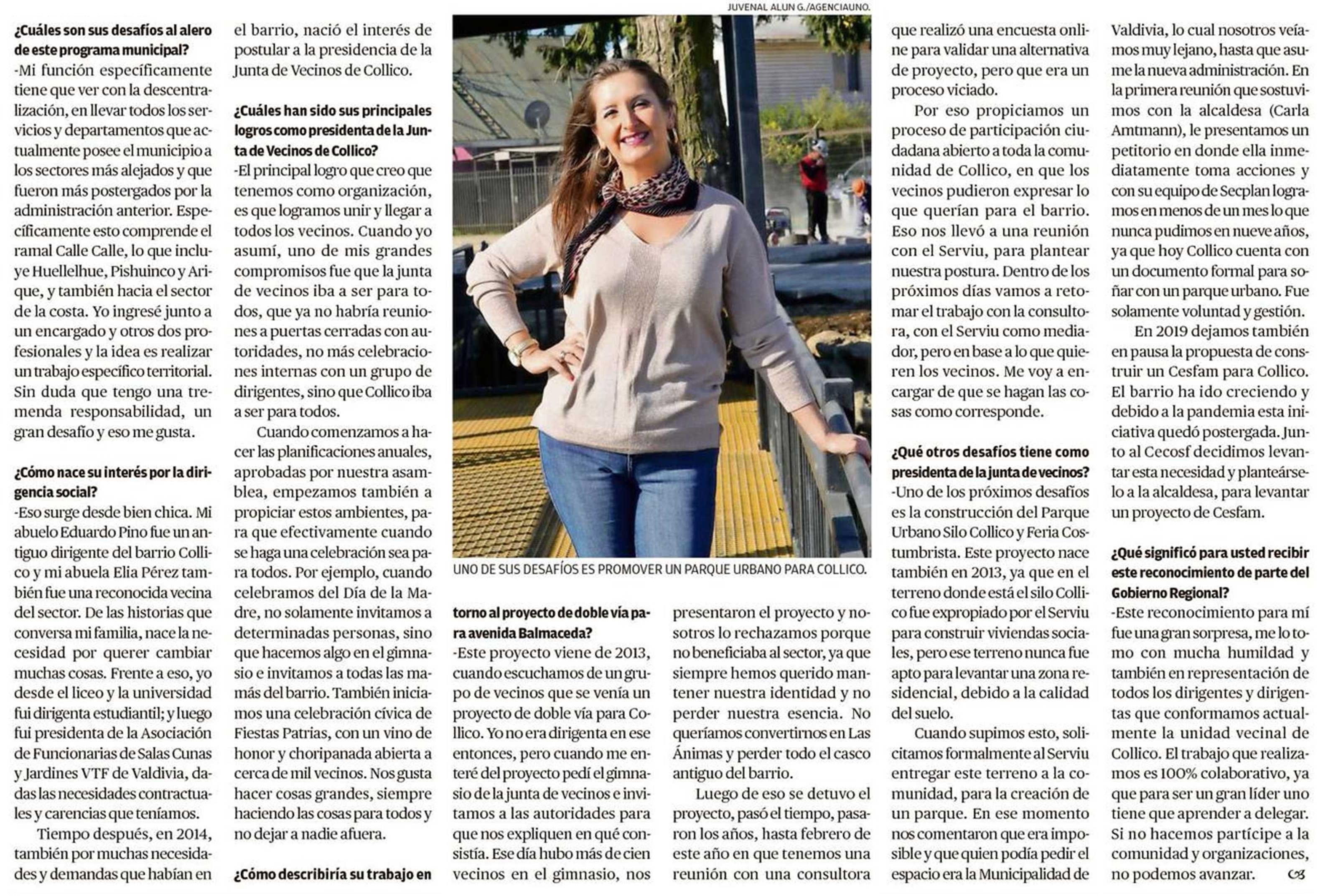 “Este reconocimiento fue una sorpresa, y me lo tomó con mucha humildad...” 09-10-2021 Diario Austral Región de Los Ríos |