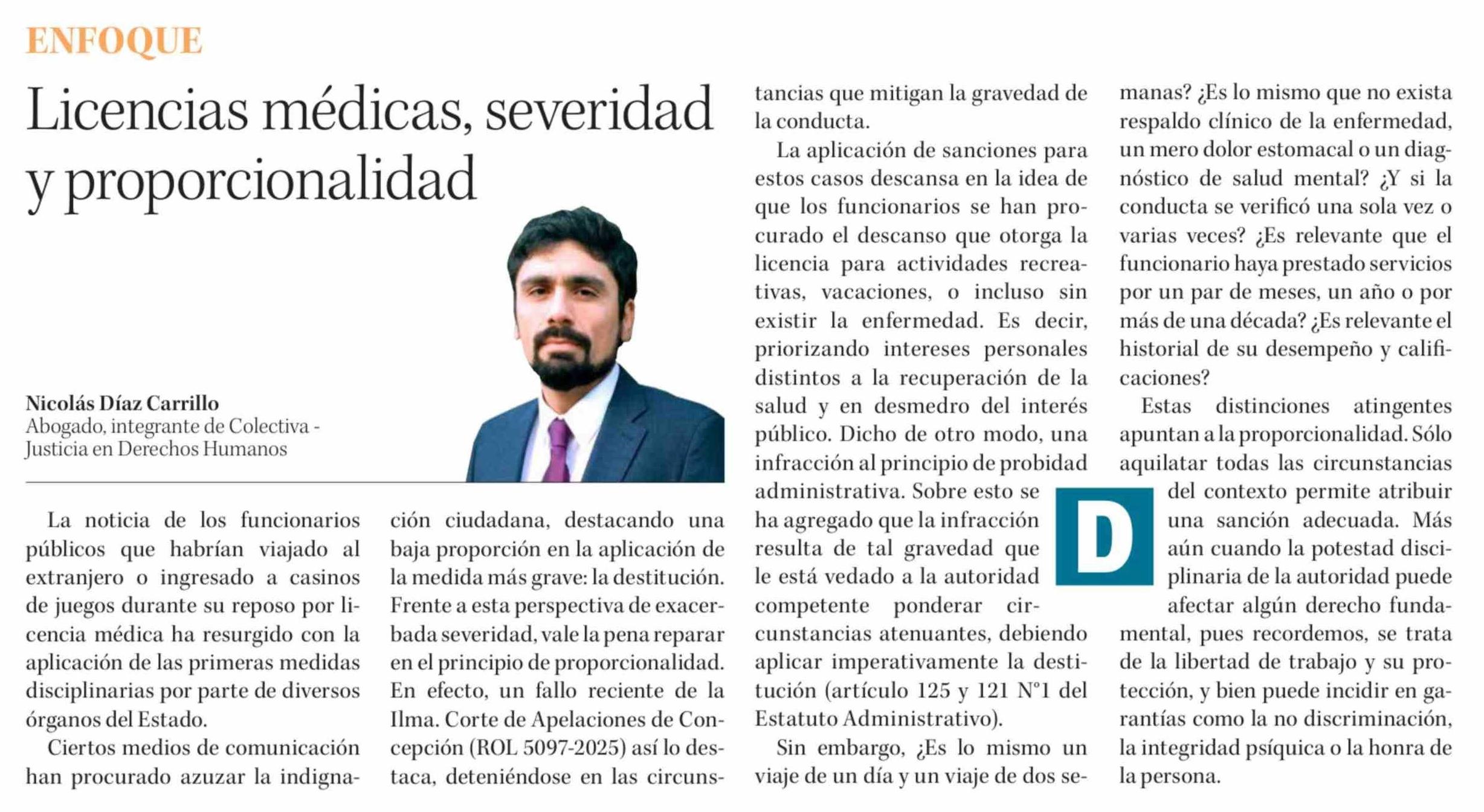 Título: Columnas de Opinión: Licencias médicas, severidad y proporcionalidad