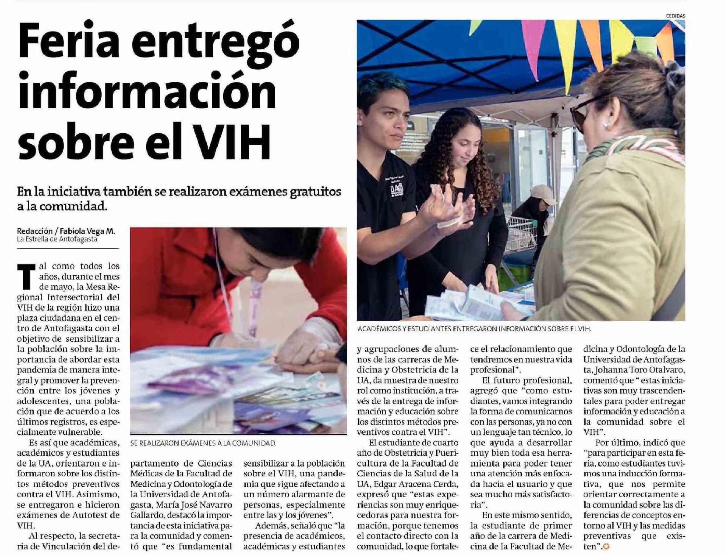 Feria entregó información sobre el VIH 22-05-2024 La Estrella de Antofagasta |
