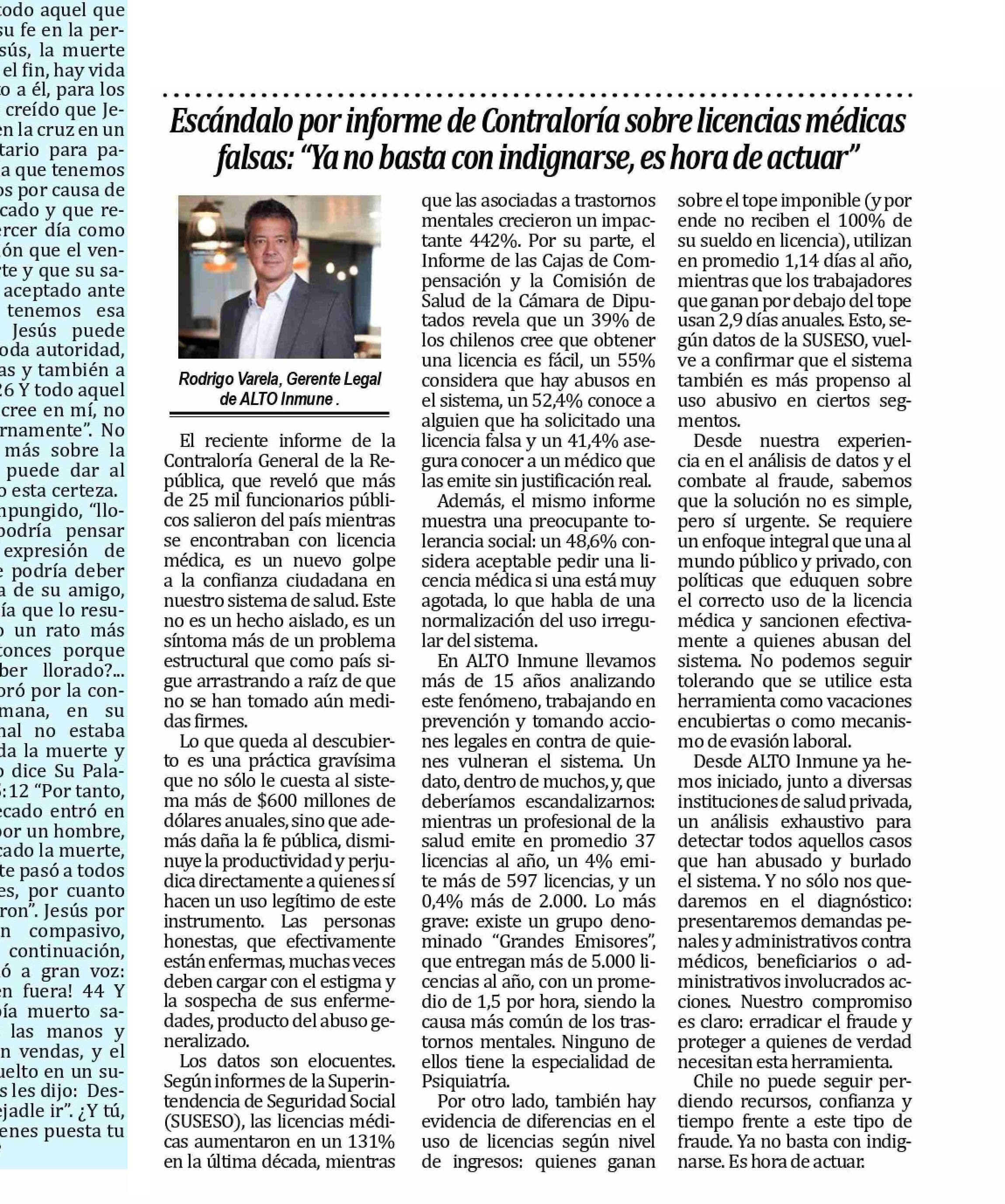 Escándalo por informe de Contraloría sobre ¡icen das médicas falsas: “Ya no basta con indignarse, es hora de actuar” 24-05-2025 Las Noticias |