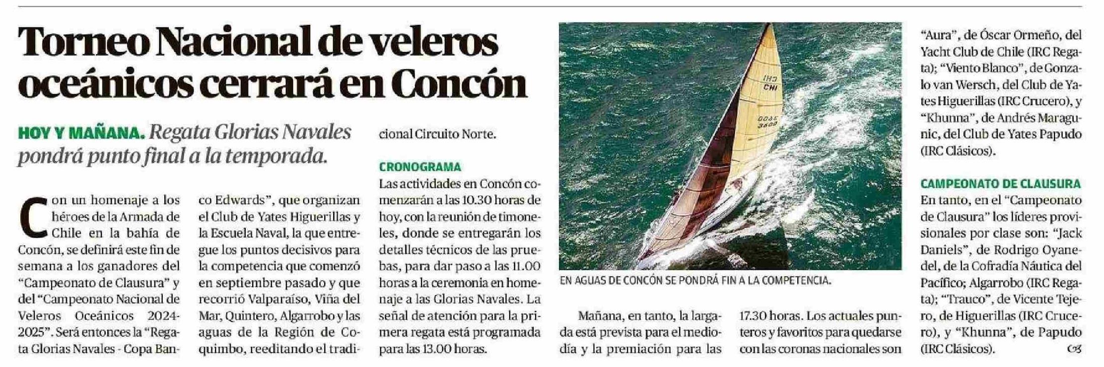 Torneo Nacional de veleros oceánicos cerrará en Concón 10-05-2025 El Mercurio de Valparaíso |