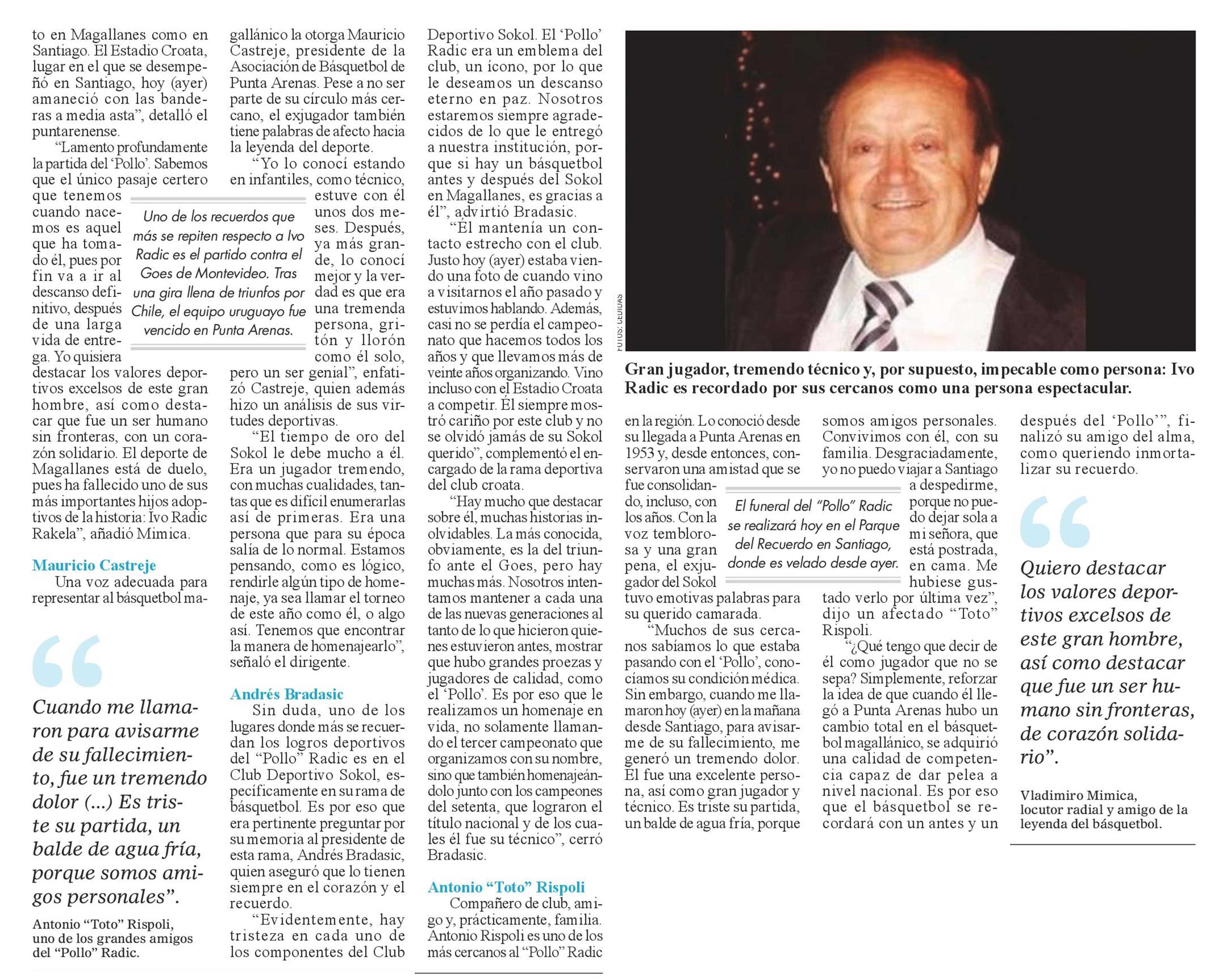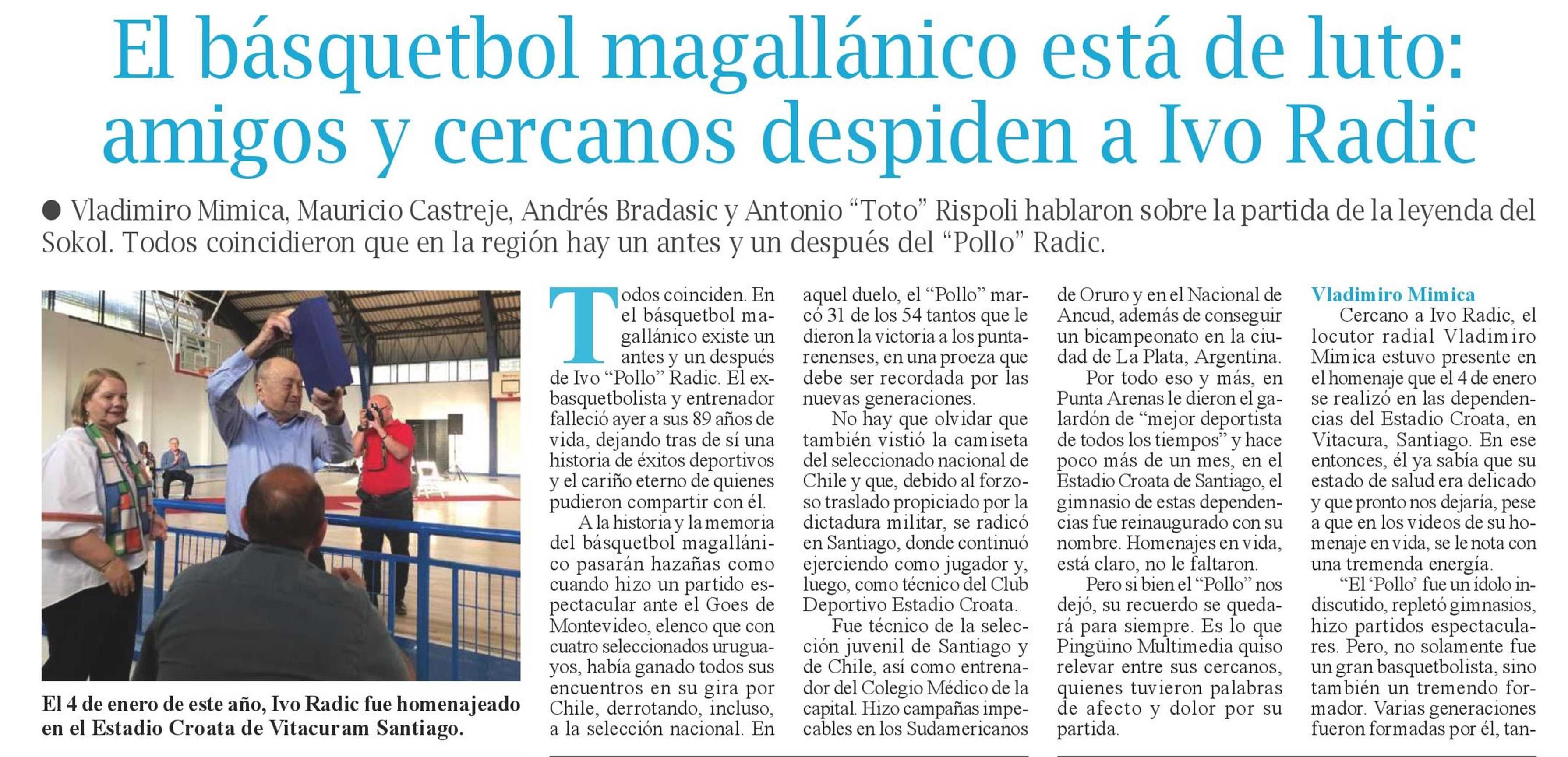 Título: El basquetbol magallánico está de luto: amigos y cercanos despiden a Ivo Radic
