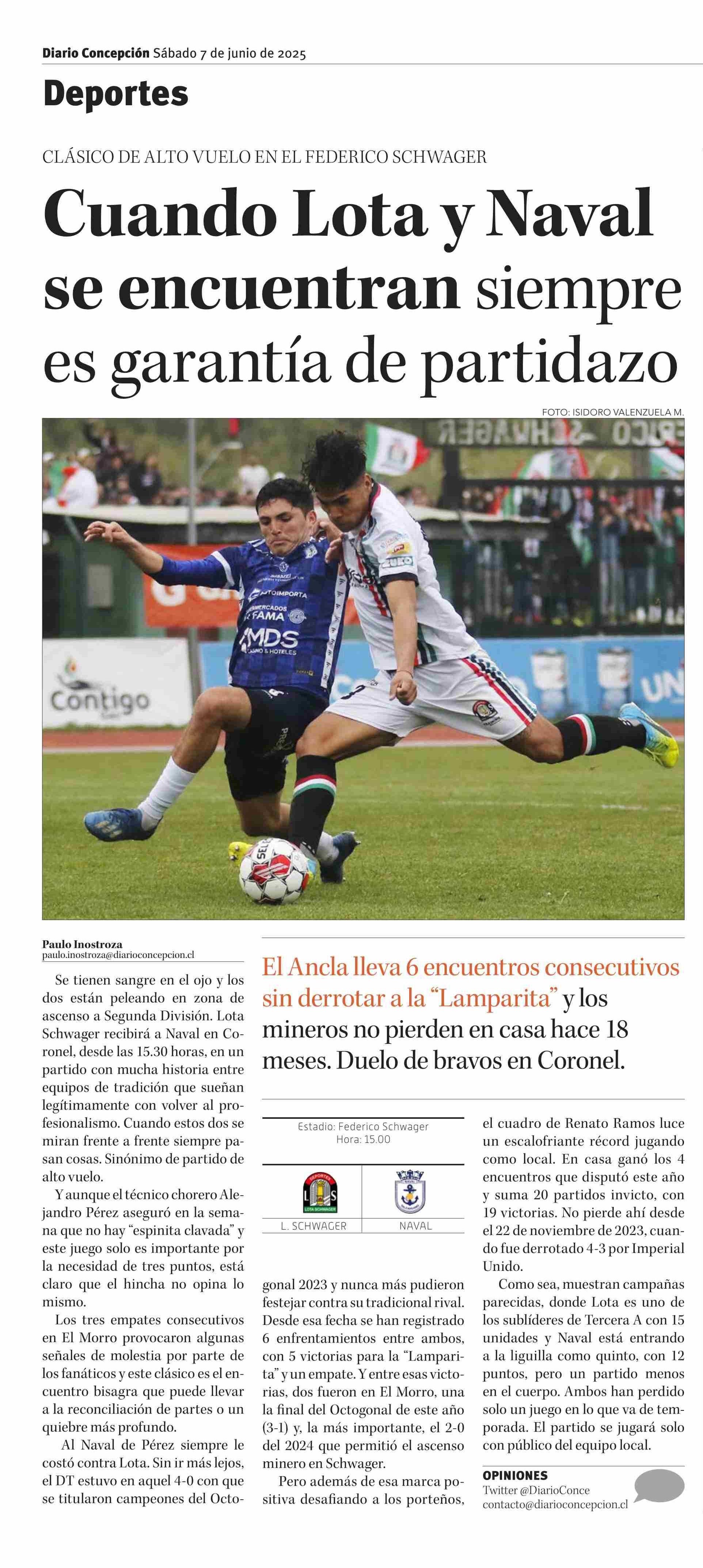 Cuando Lota y Naval se encuentran siempre es varantía de partidazo 07-06-2025 Diario Concepción |
