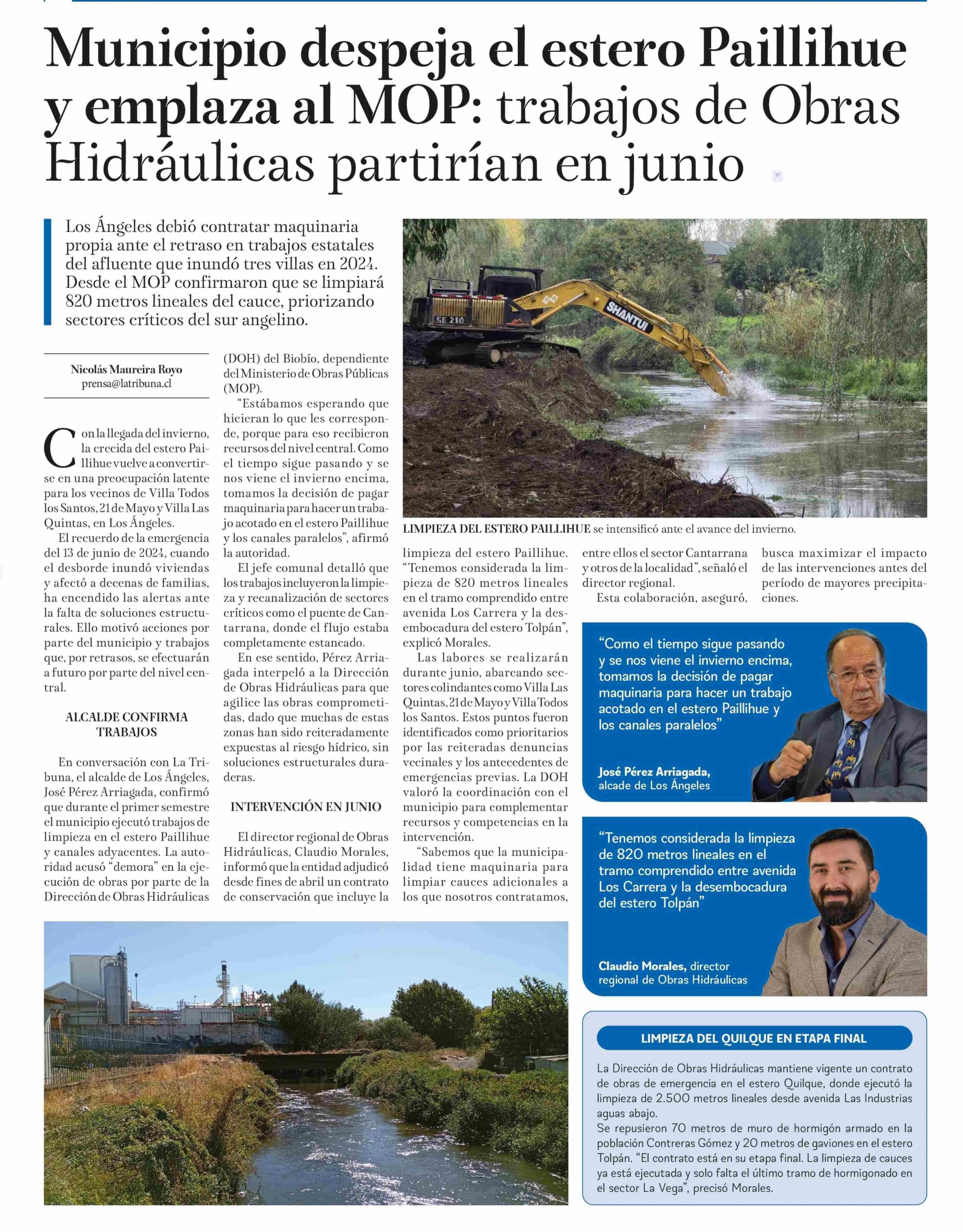 Municipio despeja el estero Paillihue y emplaza al MOP: trabajos de Obras Hidráulicas partirían en junio 04-06-2025 La Tribuna |
