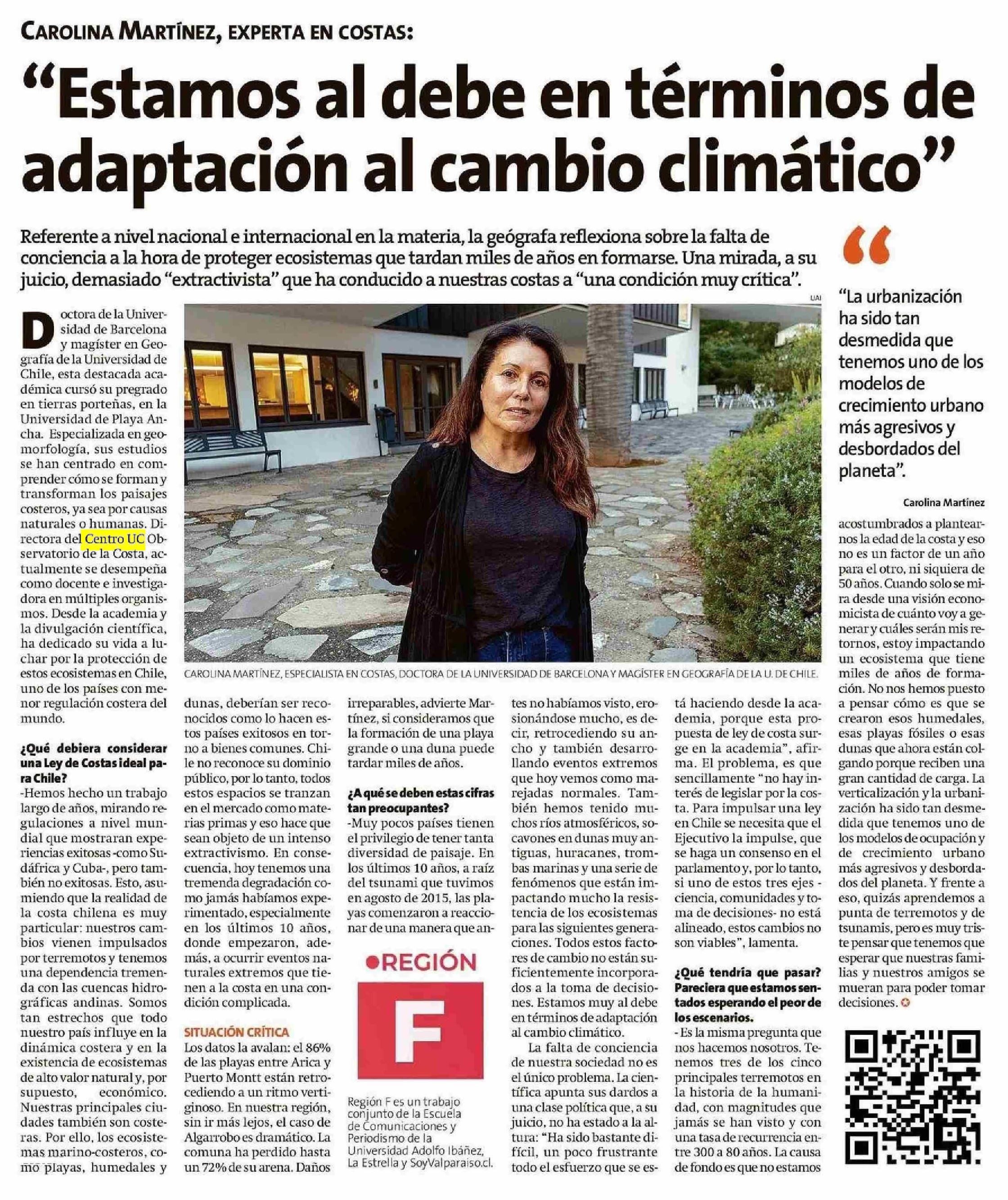 "Estamos al debe en términos de adaptación al cambio climático" 16-06-2025 La Estrella de Valparaíso |