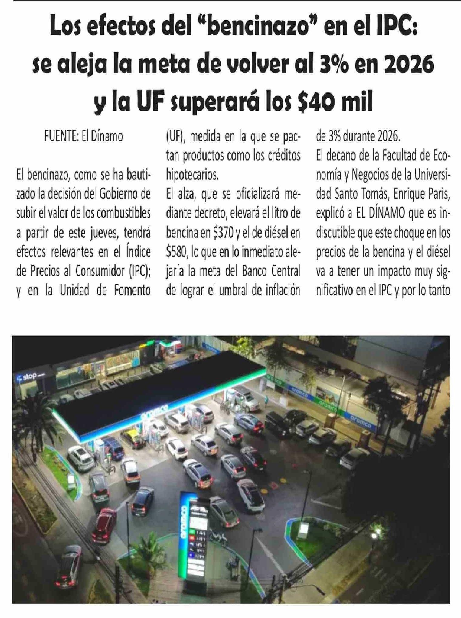 Título: Los efectos del "bencinazo" en el IPC: se aleja la meta de volver al 3% en 2026 y la UF superará los $40 mil
