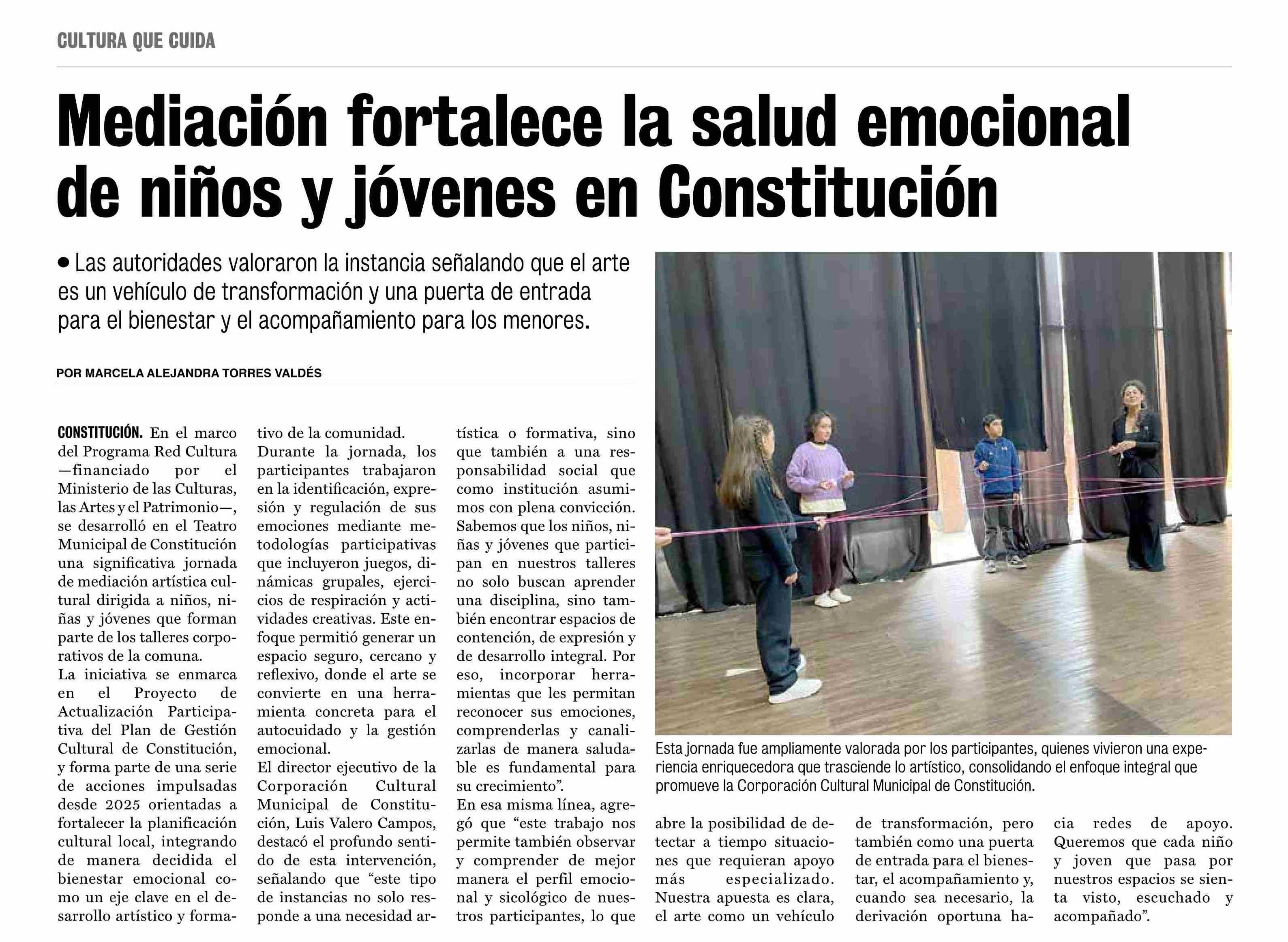 Mediación fortalece la salud emocional de niños y jóvenes en Constitución 22-04-2026 La Prensa de Curicó |