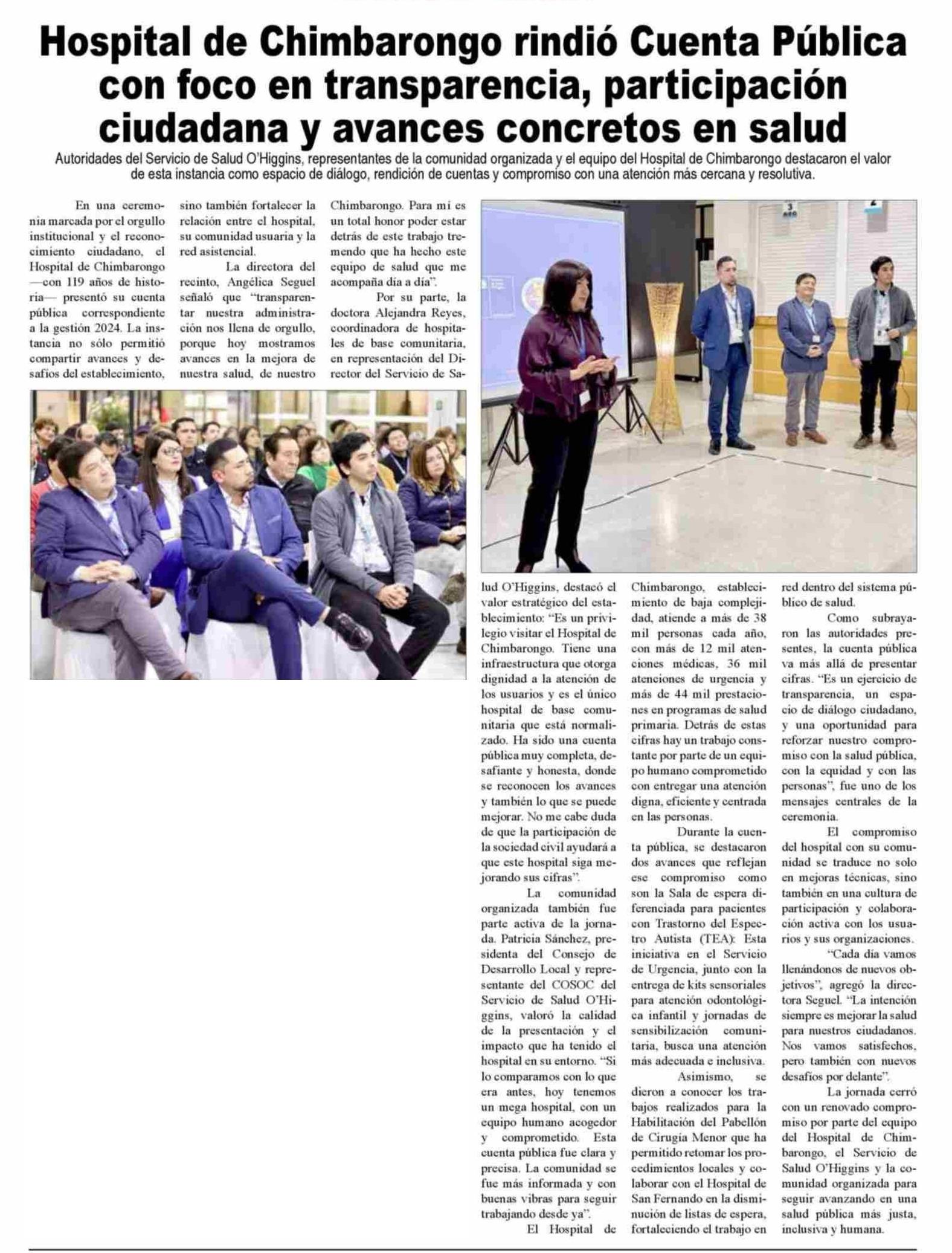 | Título: | Hospital de Chimbarongo rindió Cuenta Pública con foco en transparencia, participación ciudadana y avances concretos en salud |
