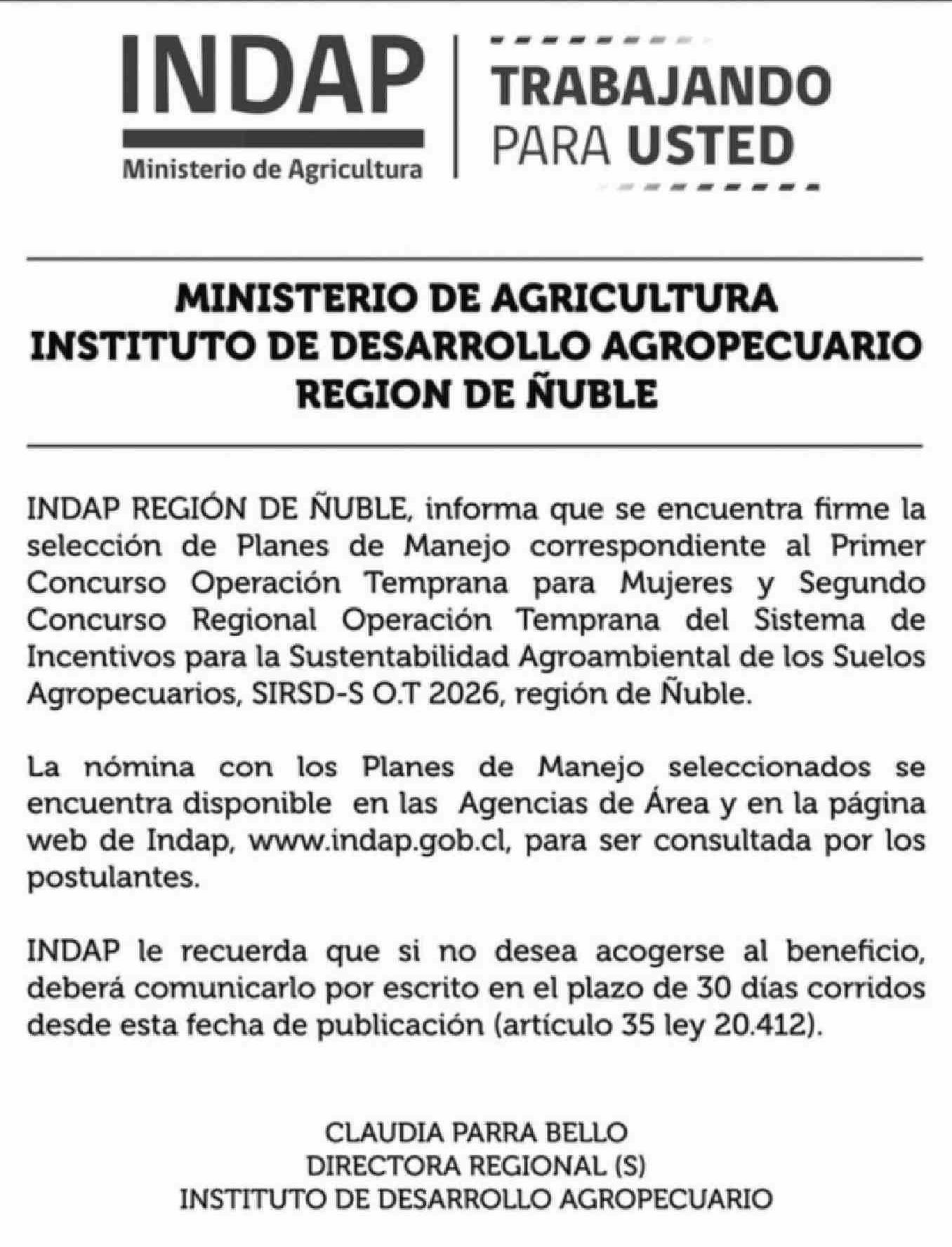Fecha: 10-04-2026 Sector: Extractos Región: Región del Ñuble
