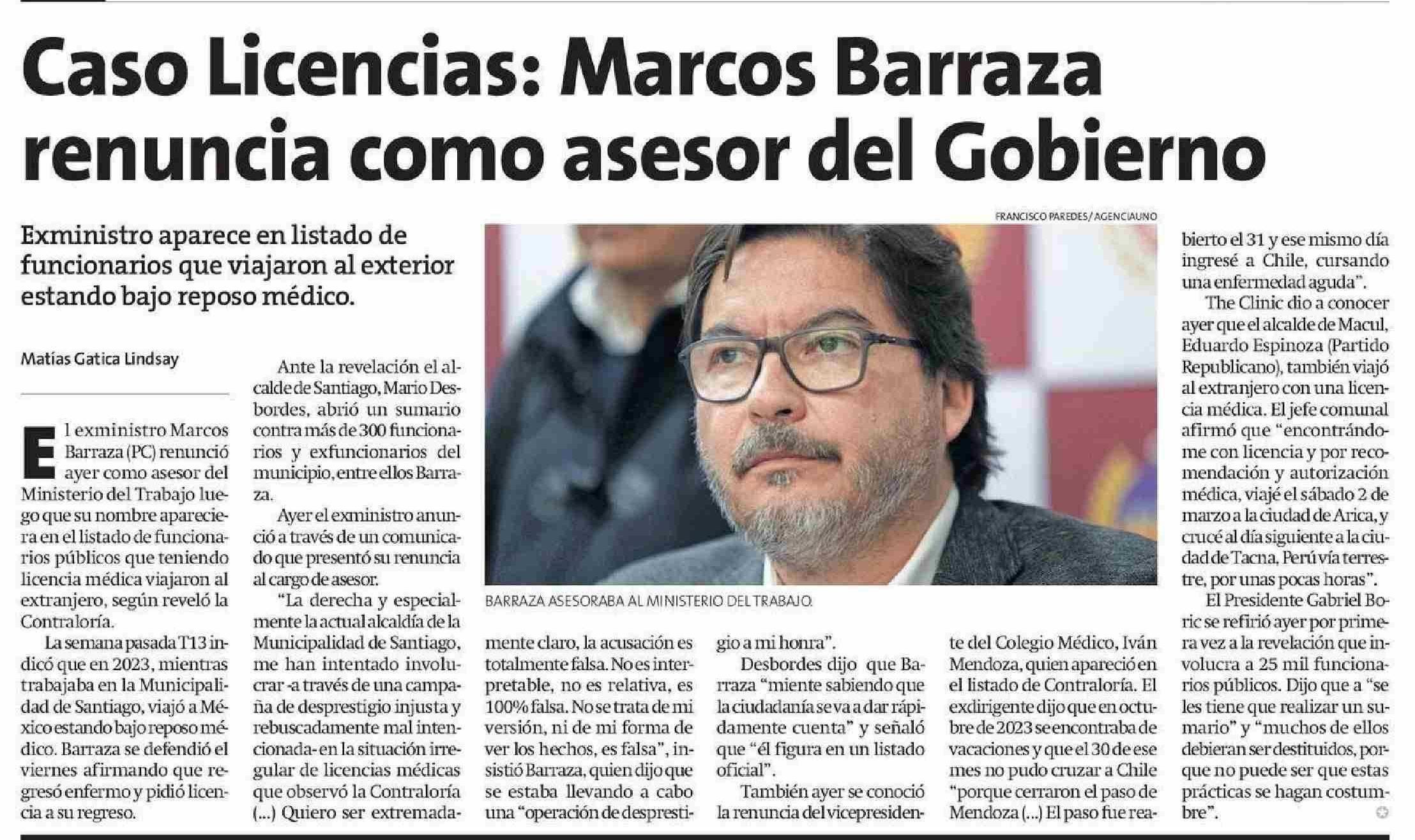 Caso Licencias: Marcos Barraza renuncia como asesor del Gobierno 27-05-2025 La Estrella de Iquique |