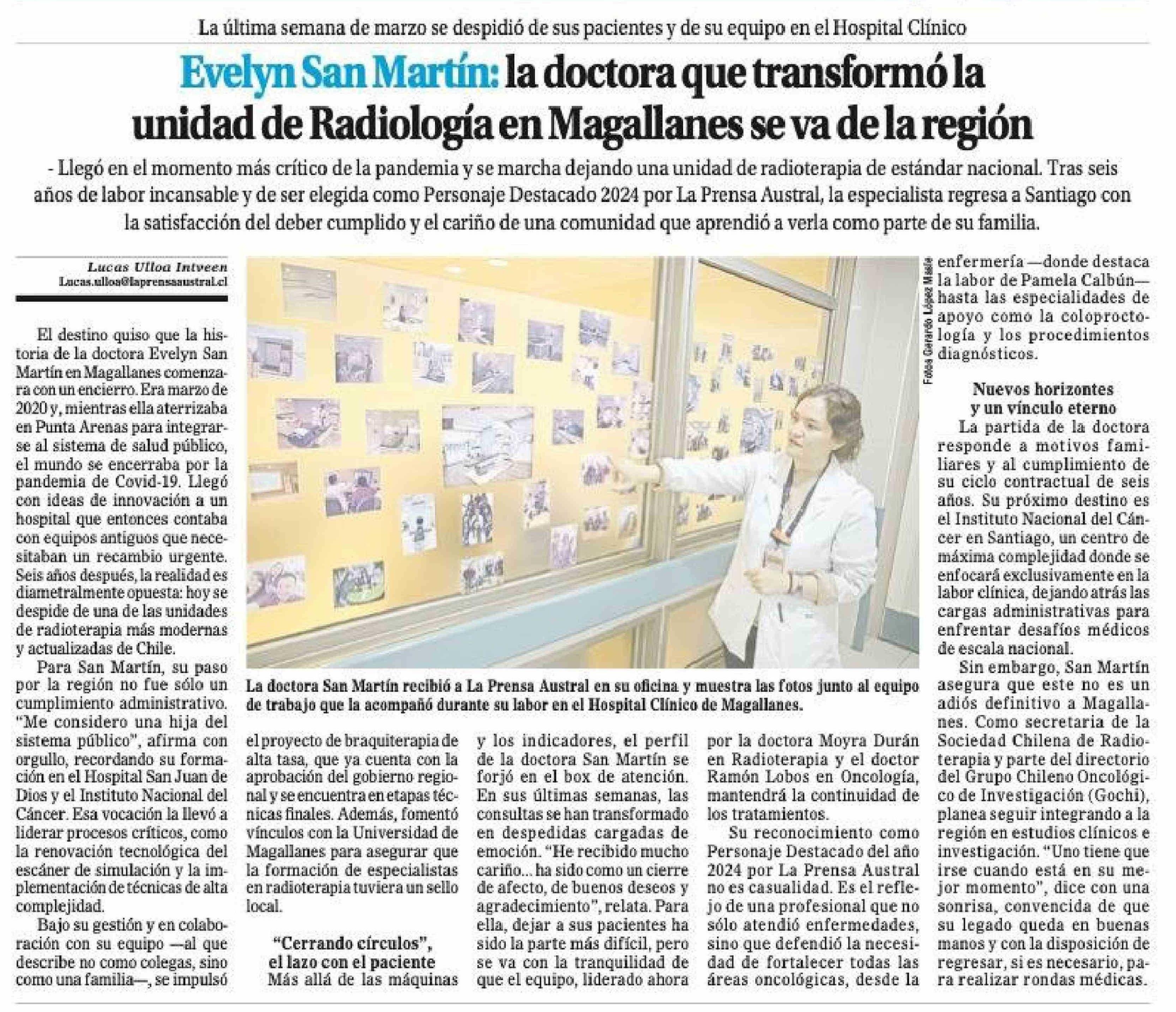 Título: Evelyn San Martín: la doctora que transformó la unidad de Radiología en Magallanes se va de la región