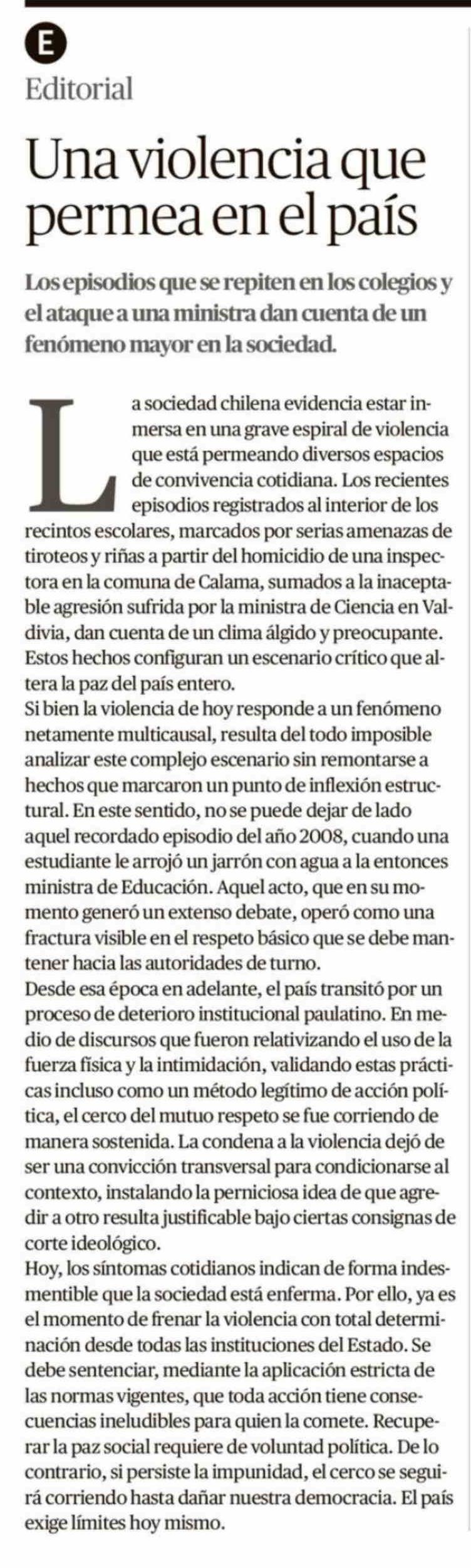 Editorial: Una violencia que permea en el país 12-04-2026 El Austral de Osorno |