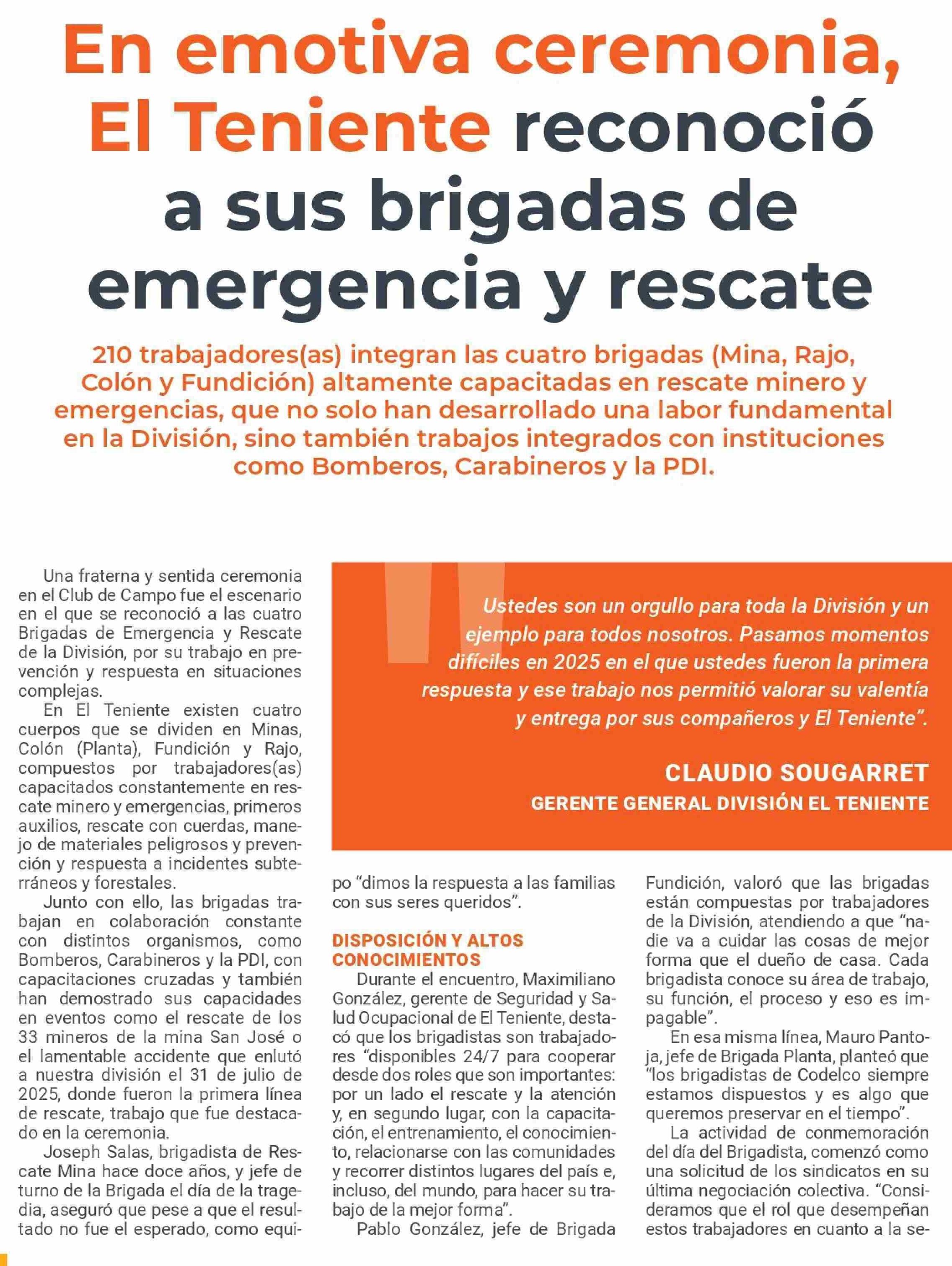 En emotiva ceremonia, El Teniente reconoció a sus brigadas de emergencia y rescate