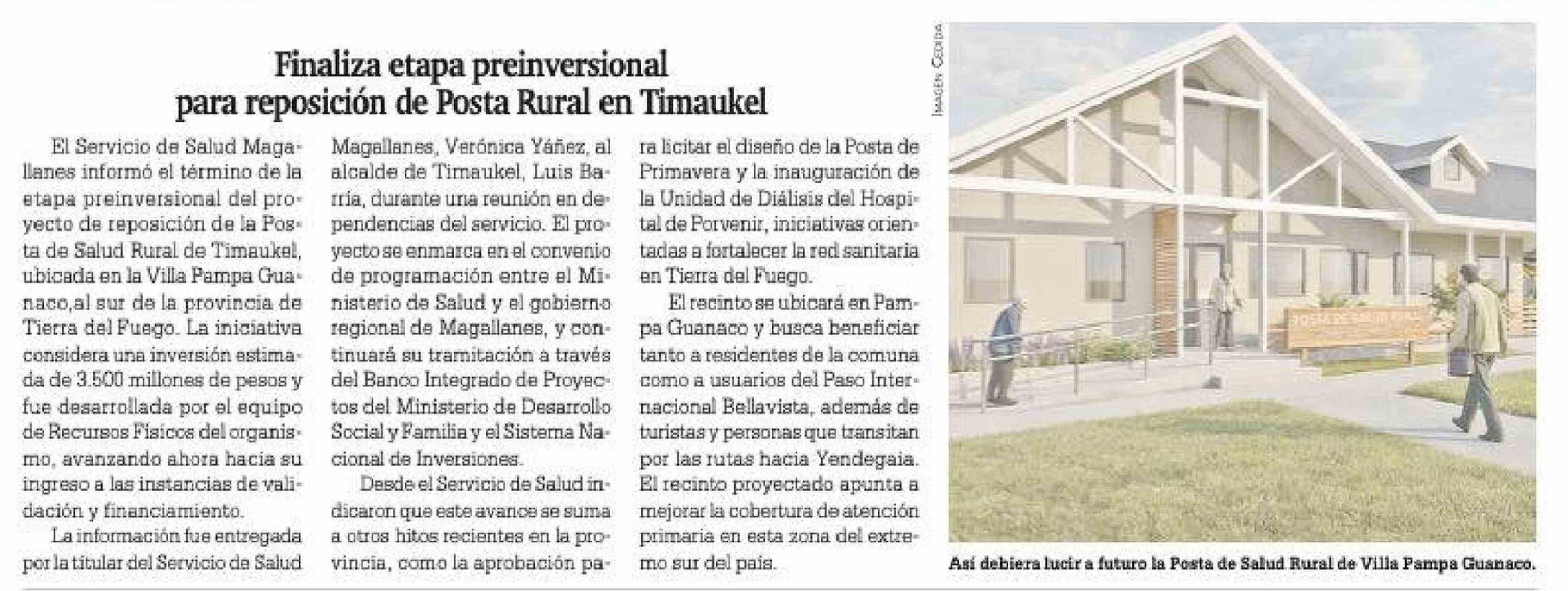 Título: Finaliza etapa preinversional para reposición de Posta Rural en Timaukel