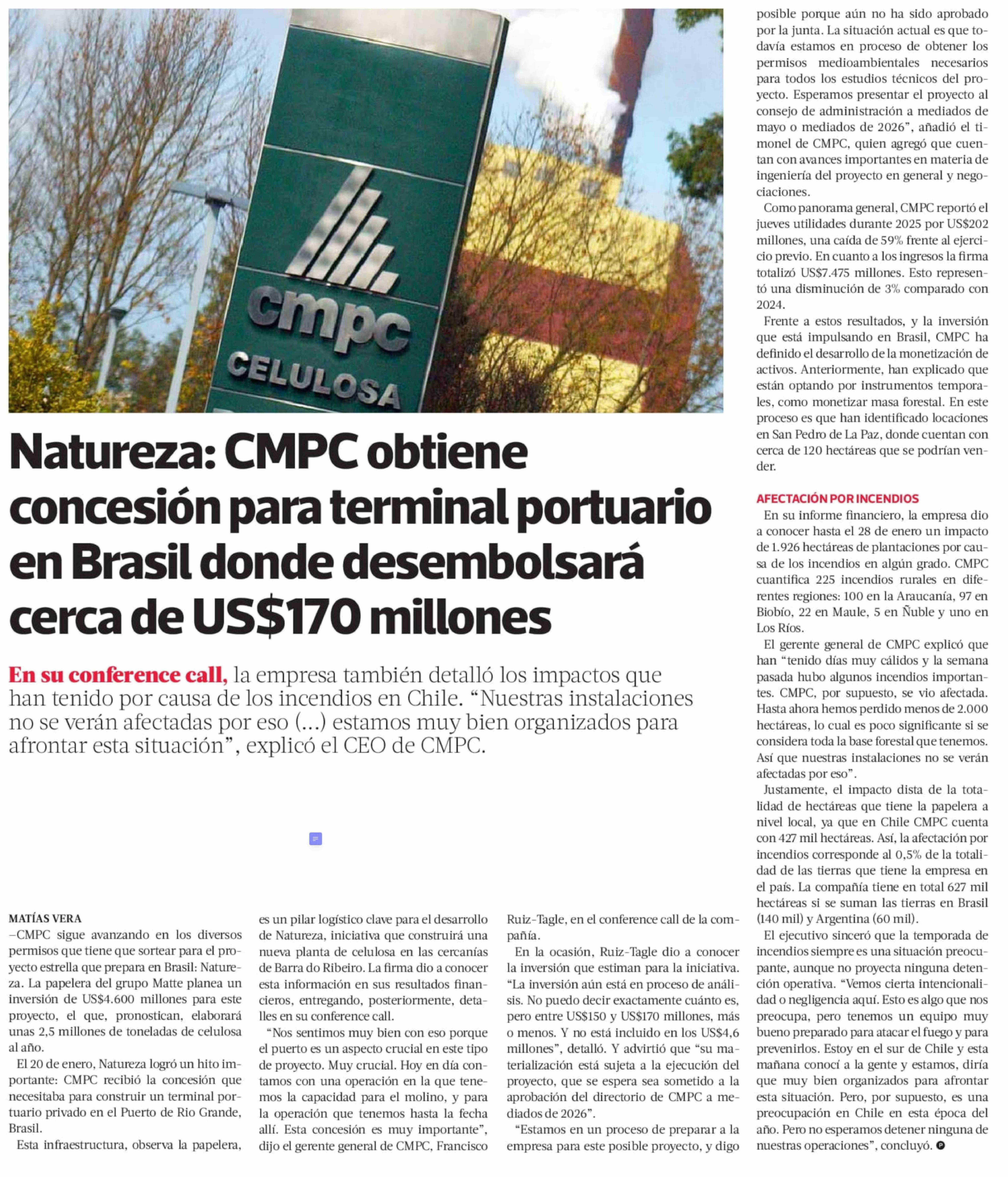 Título: Natureza: CMPC obtiene concesión para terminal portuario en Brasil donde desembolsará cerca de US$170 millones