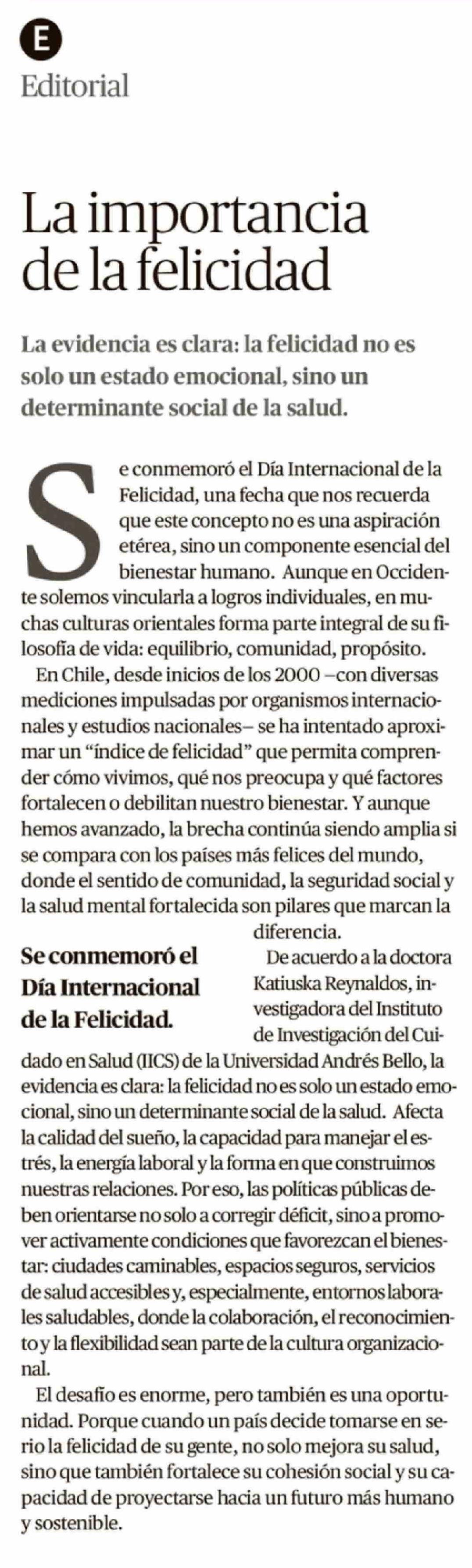 Editorial: La importancia de la felicidad 22-03-2026 Crónica de Chillán |