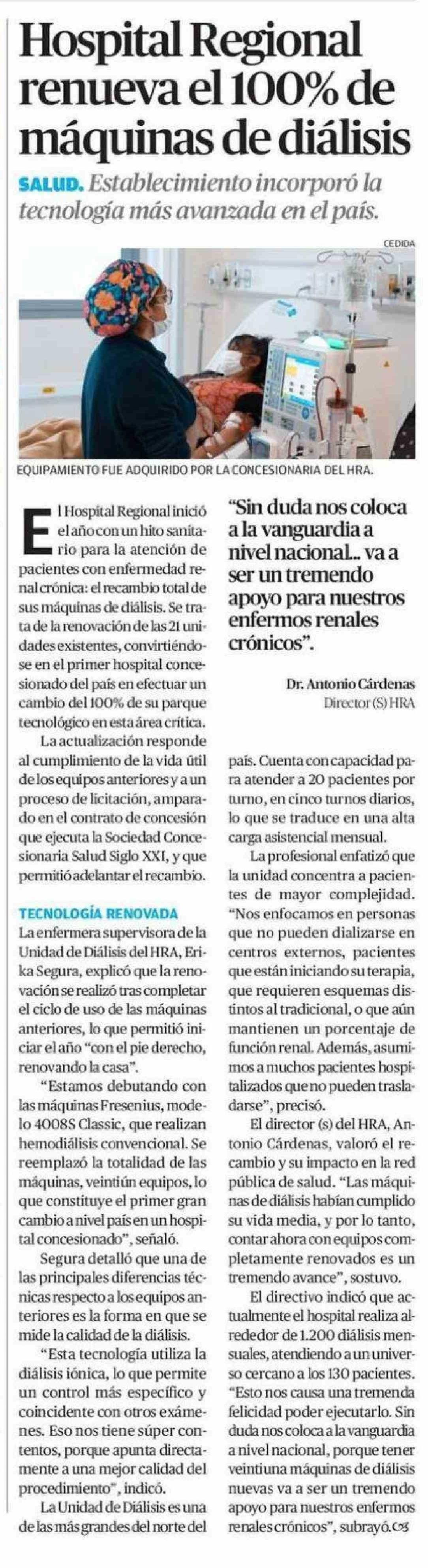 Título: Hospital Regional renueva el 100% de máquinas de diálisis