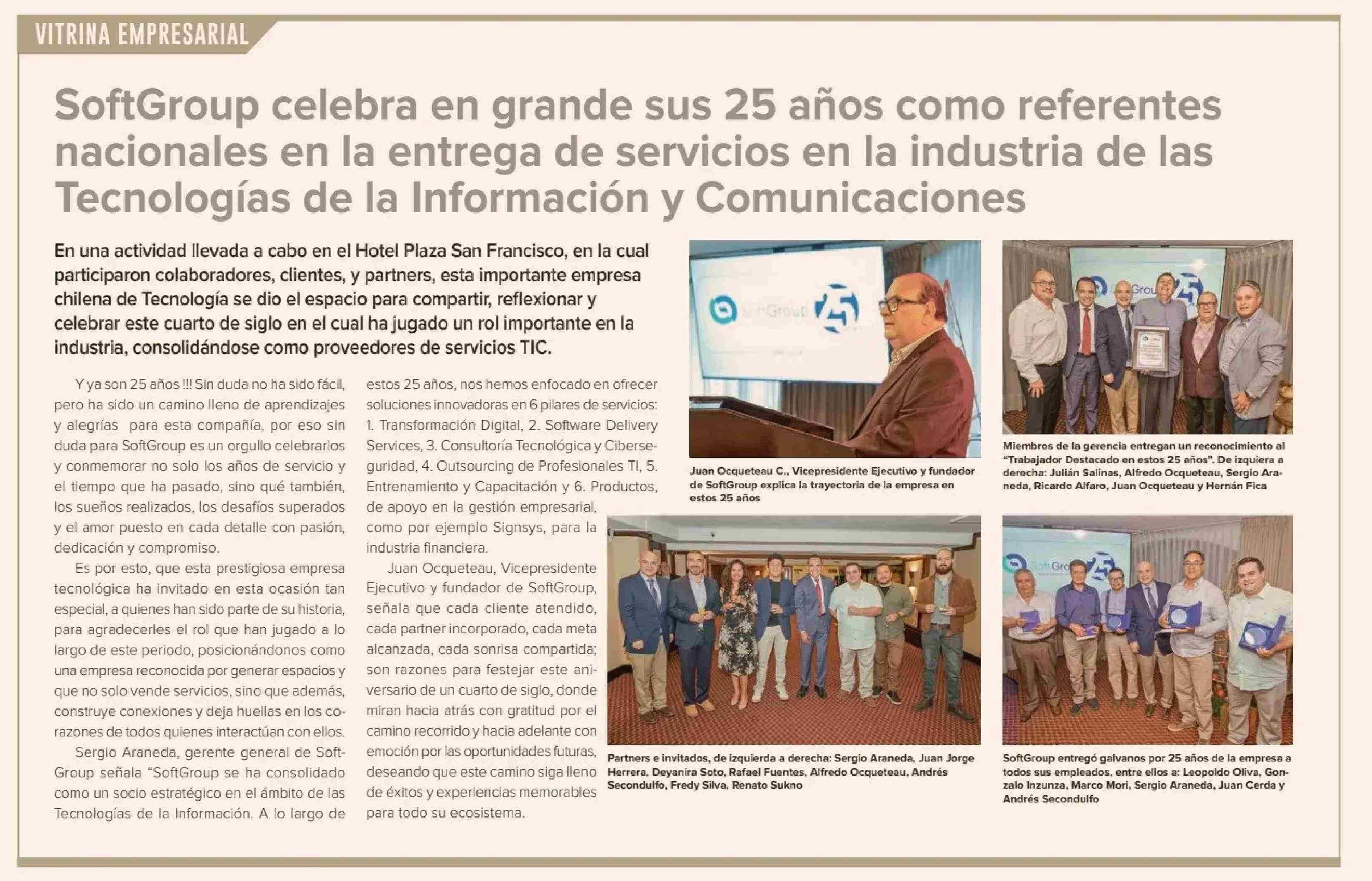 SoftGroup celebra en grande sus 25 años como referentes nacionales en la entrega de servicios en la industria de las Tecnologías de la Información y Comunicaciones 14-01-2025 Diario Financiero |